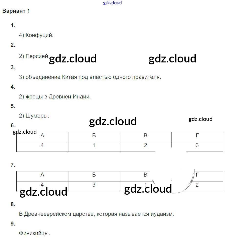 Ответ на задание Вариант №1 Проверочные и контрольные работы История за 5 (пятый) класс Крючкова 2015