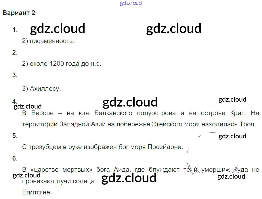 Ответ на задание Вариант №2 Проверочные и контрольные работы История за 5 (пятый) класс Крючкова 2015