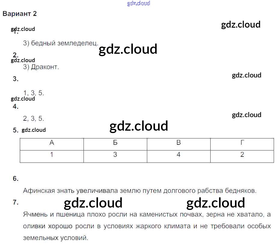 Ответ на задание Вариант №2 Проверочные и контрольные работы История за 5 (пятый) класс Крючкова 2015