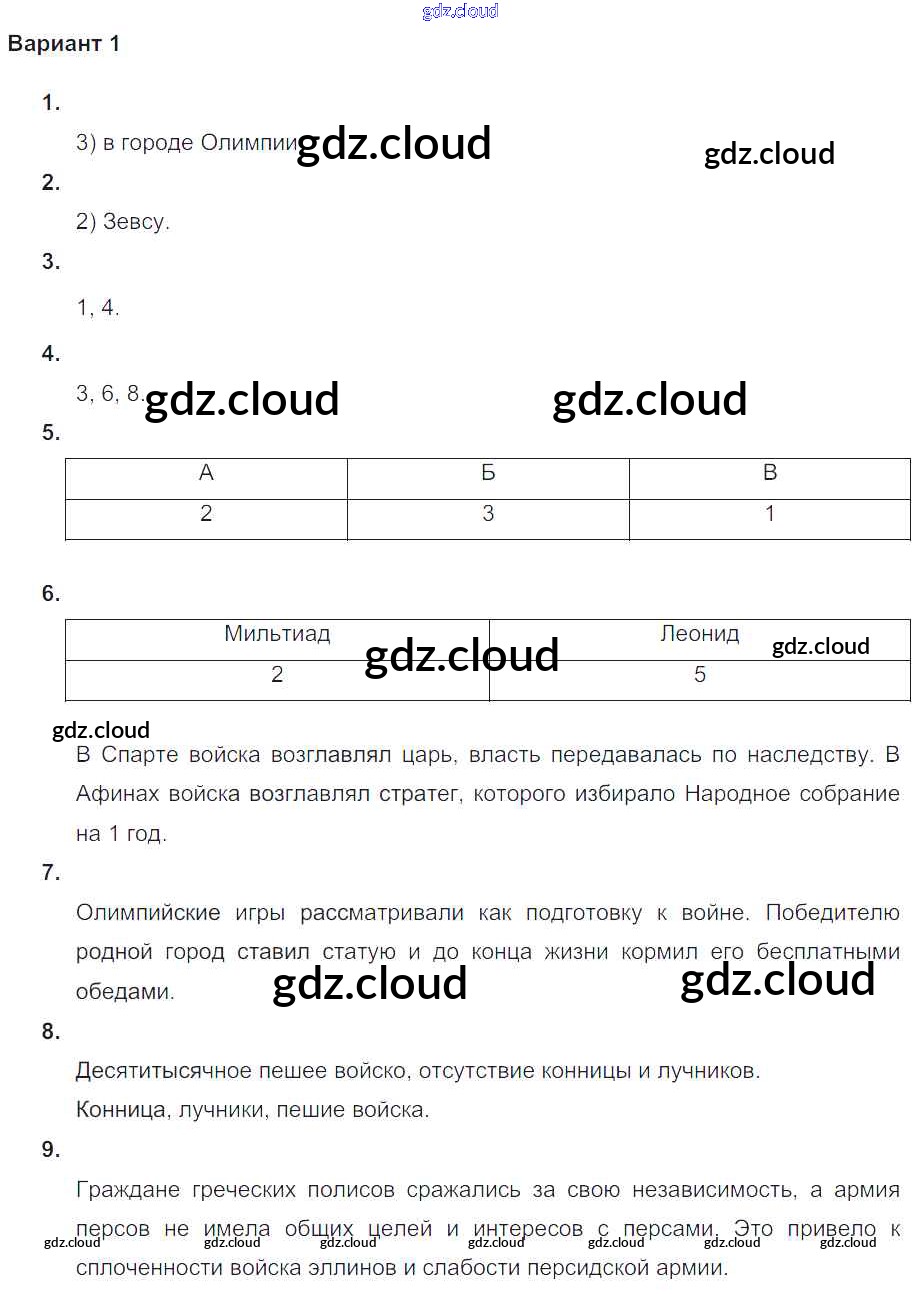 Проверочная работа-3 Ответы к Главе-8. Полисы Греции и их борьба с персидским нашествием по Истории 5 класс Проверочные и контрольные работы Крючкова Просвещение