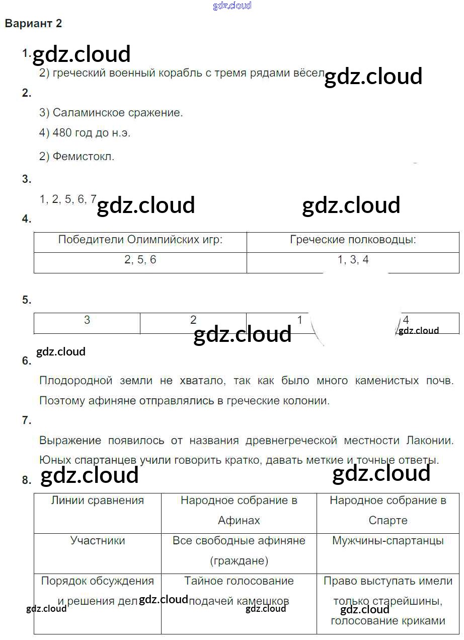 Ответ на задание Вариант №2 Проверочные и контрольные работы История за 5 (пятый) класс Крючкова 2015