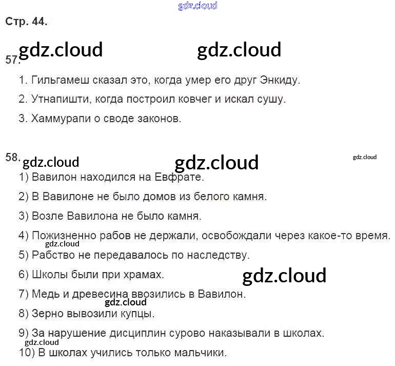 Ответ на задание 44 Рабочая тетрадь История за 5 (пятый) класс Годер 2017 Часть 1, 2