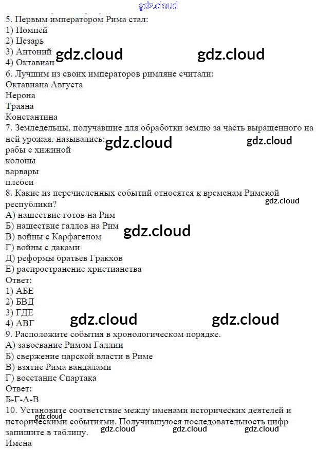 Ответы. Часть 2. Страницы по Истории 5 класс Рабочая тетрадь Годер Часть 1, 2 Просвещение