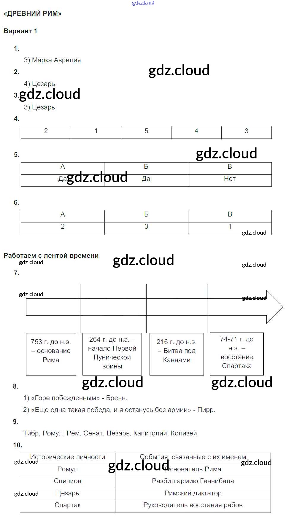 КР-1. Древний Рим Ответы к Контрольным работам по Истории 5 класс Тематический контроль Саплина Национальное образование