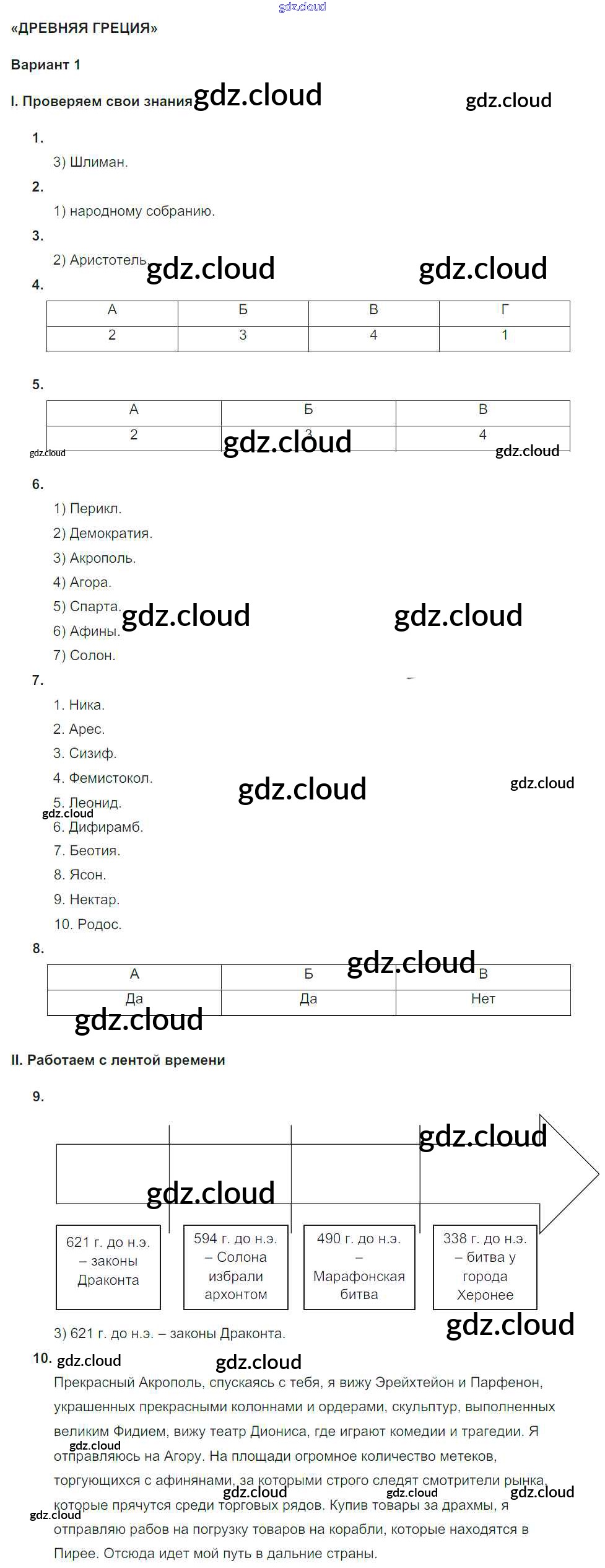 КР-3. Древняя Греция Ответы к Контрольным работам по Истории 5 класс Тематический контроль Саплина Национальное образование
