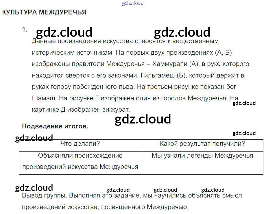 Ответ на задание №3. Культура Междуречья Тематический контроль История за 5 (пятый) класс Саплина 2016