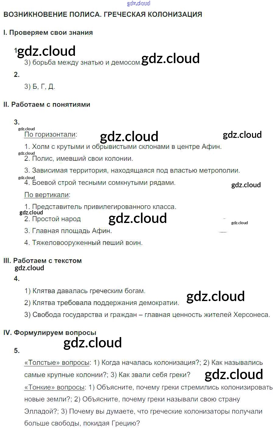 Ответ на задание СР №12. Возникновение полиса. Греческая колонизация Тематический контроль История за 5 (пятый) класс Саплина 2016