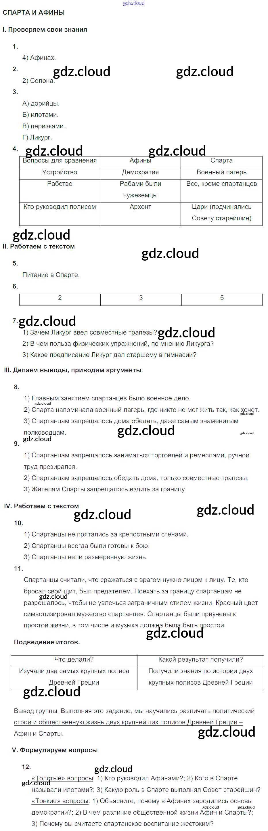 Ответ на задание СР №14. Спарта и Афины Тематический контроль История за 5 (пятый) класс Саплина 2016