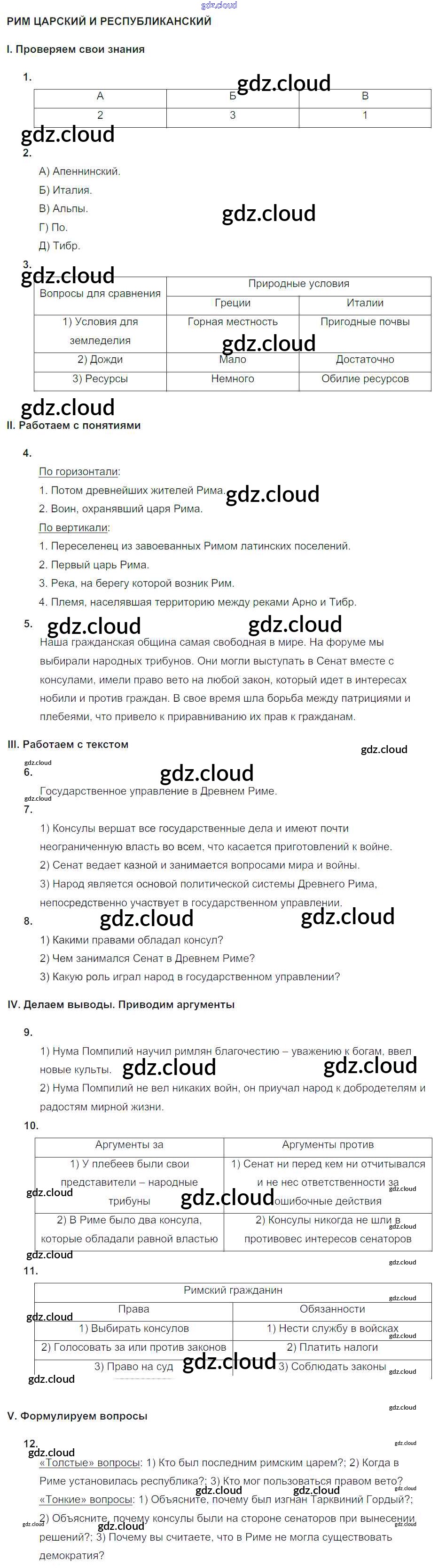 Ответ на задание СР №20. Рим царский и республиканский Тематический контроль История за 5 (пятый) класс Саплина 2016