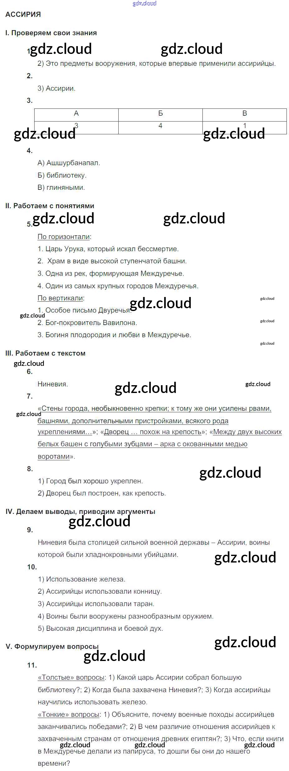 Ответ на задание СР №4. Ассирия Тематический контроль История за 5 (пятый) класс Саплина 2016
