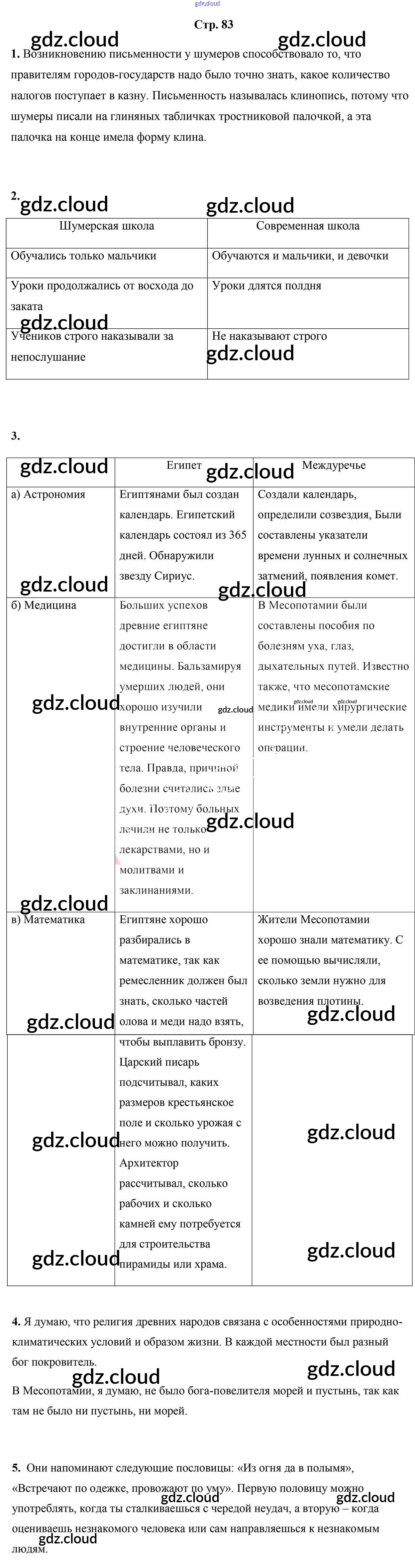 Ответ на задание 83 Учебник История за 5 (пятый) класс Кошелев 2014 Часть 1, 2 онлайн и без номера телефона.
