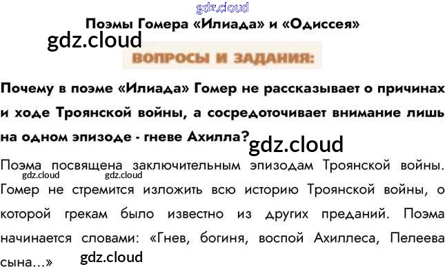 поэмы Гомера «Илиада» и «Одиссея» / вопросы и задания / 1