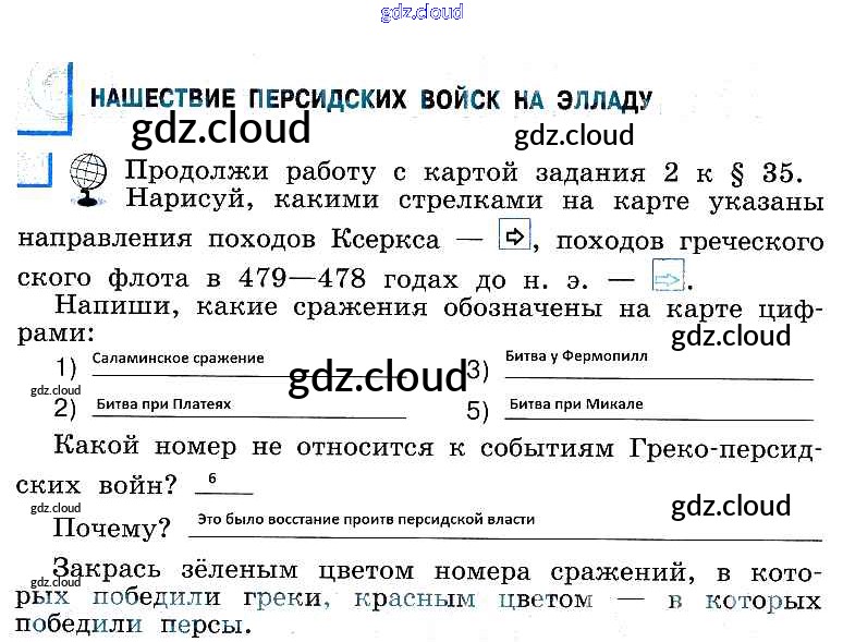 Ответ на задание 36 Рабочая тетрадь История за 5 (пятый) класс Уколова 2012 онлайн и без номера телефона.