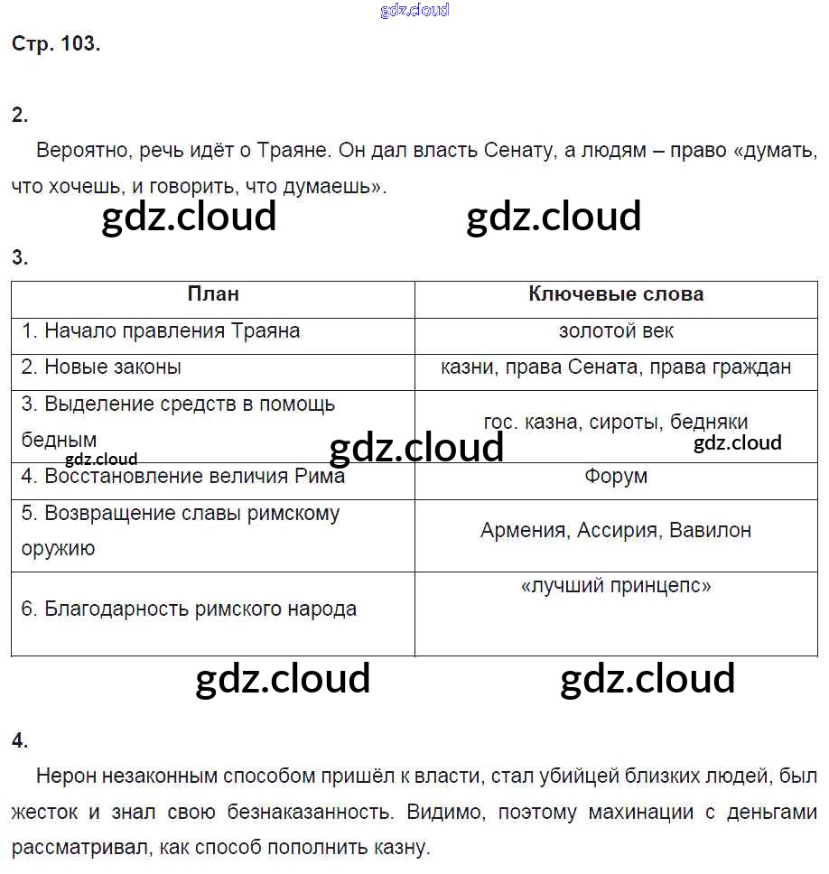Ответ на задание 103 Рабочая тетрадь История за 5 (пятый) класс Ванина, Данилова 2015 ФГОС онлайн и без номера телефона.