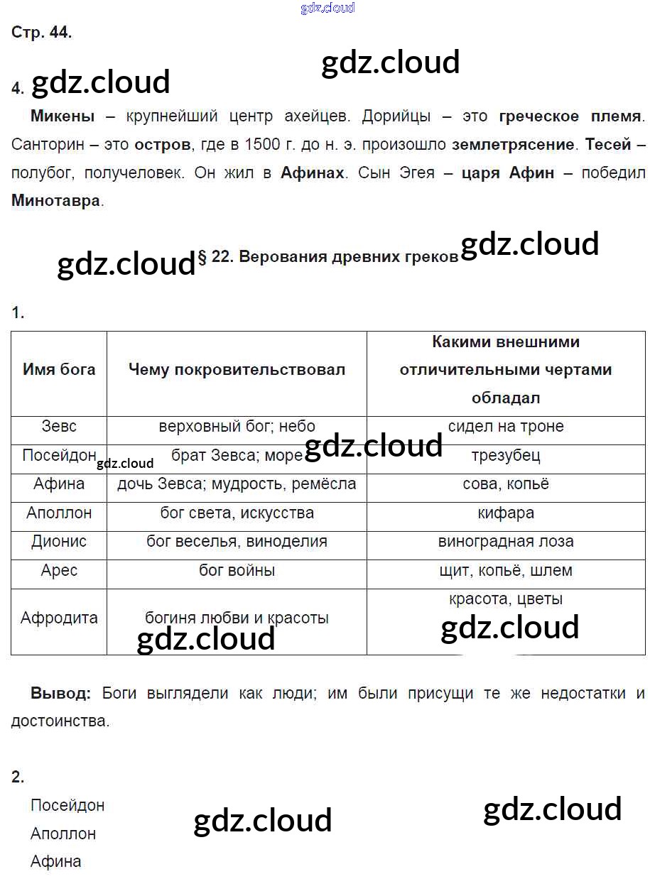 Ответ на задание 44 Рабочая тетрадь История за 5 (пятый) класс Ванина, Данилова 2015 ФГОС онлайн и без номера телефона.