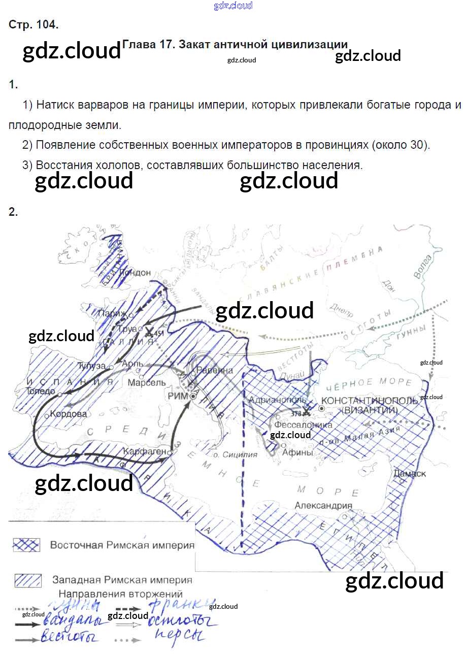 Ответ на задание стр.104 Рабочая тетрадь История за 5 (пятый) класс Жукова Инновационная школа 2018 ФГОС онлайн и без номера телефона.