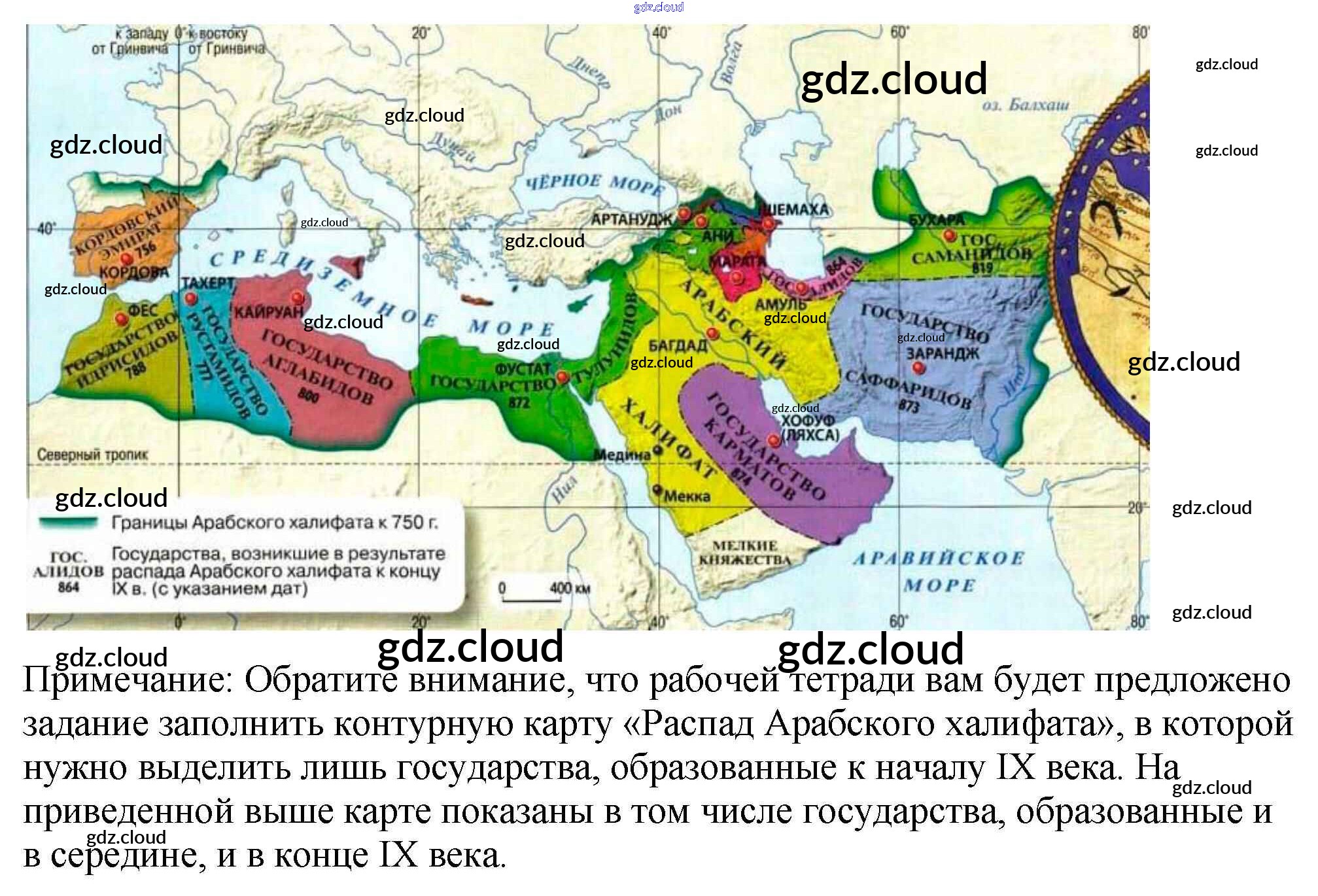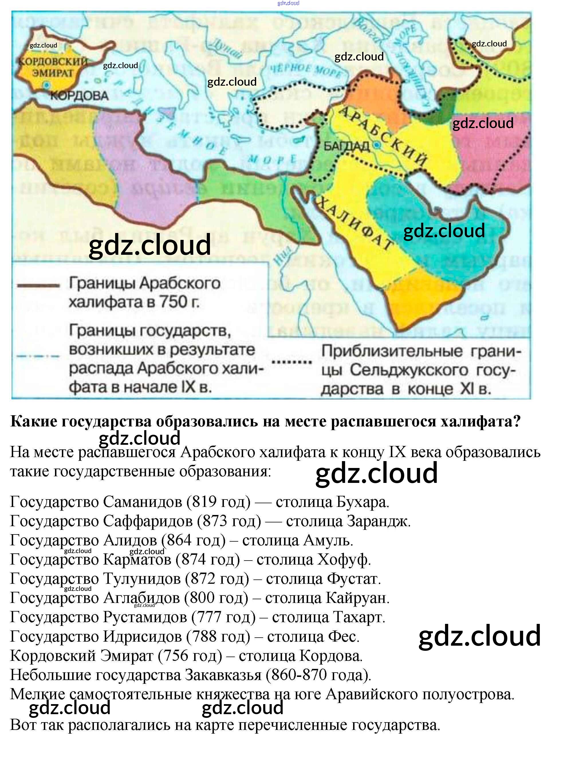 Вопросы к карте § 9. Возникновение ислама. Арабский халифат и его распад по Истории 6 класс Учебник Агибалова Просвещение