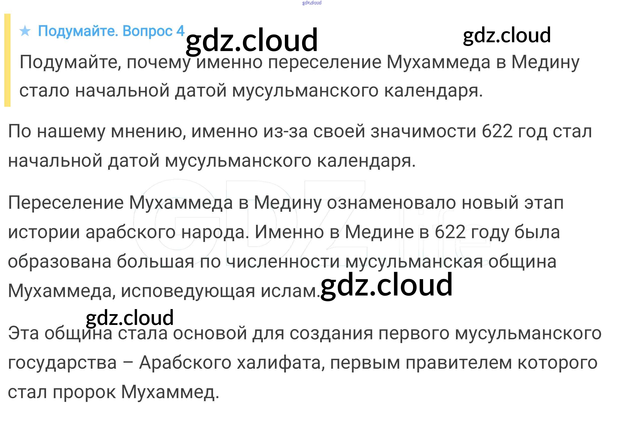 Подумайте § 9. Возникновение ислама. Арабский халифат и его распад по Истории 6 класс Учебник Агибалова Просвещение