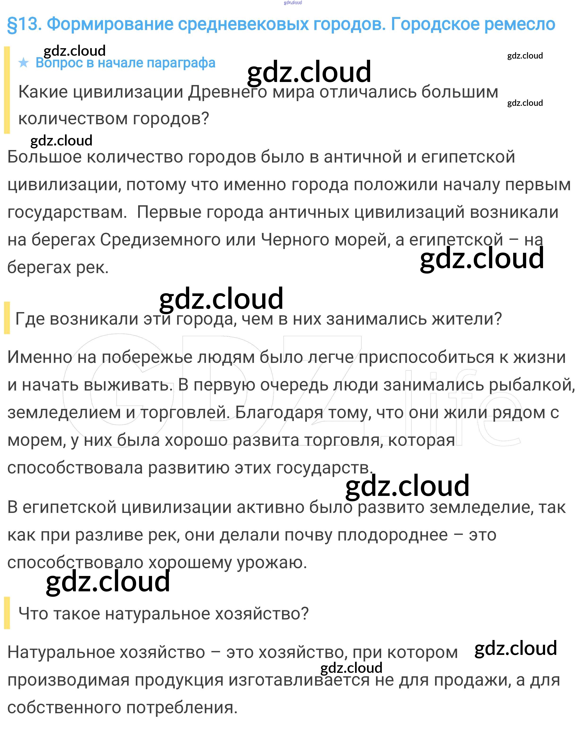 Вопросы в начале параграфа § 13. Формирование средневековых городов. Городское ремесло по Истории 6 класс Учебник Агибалова Просвещение