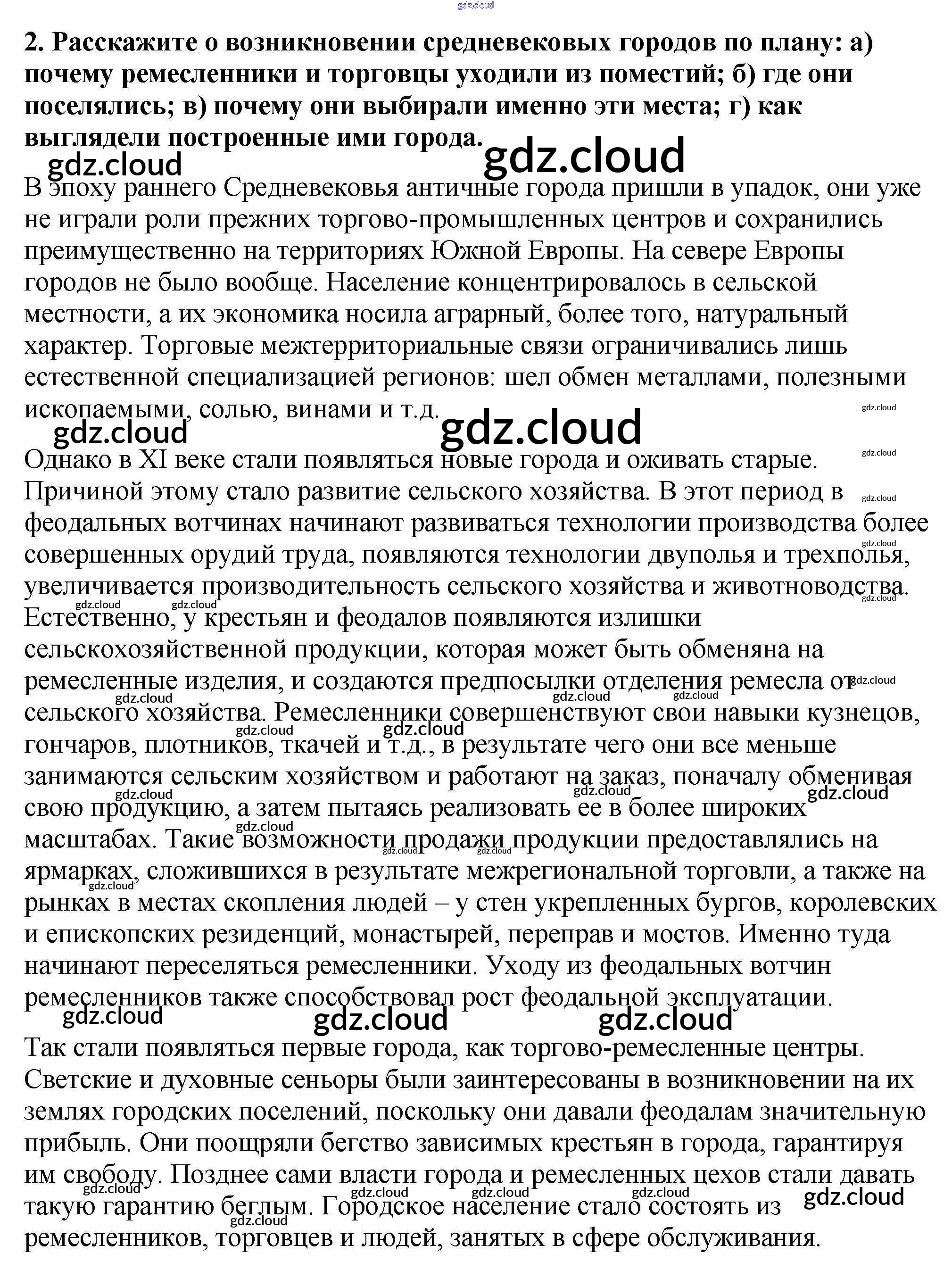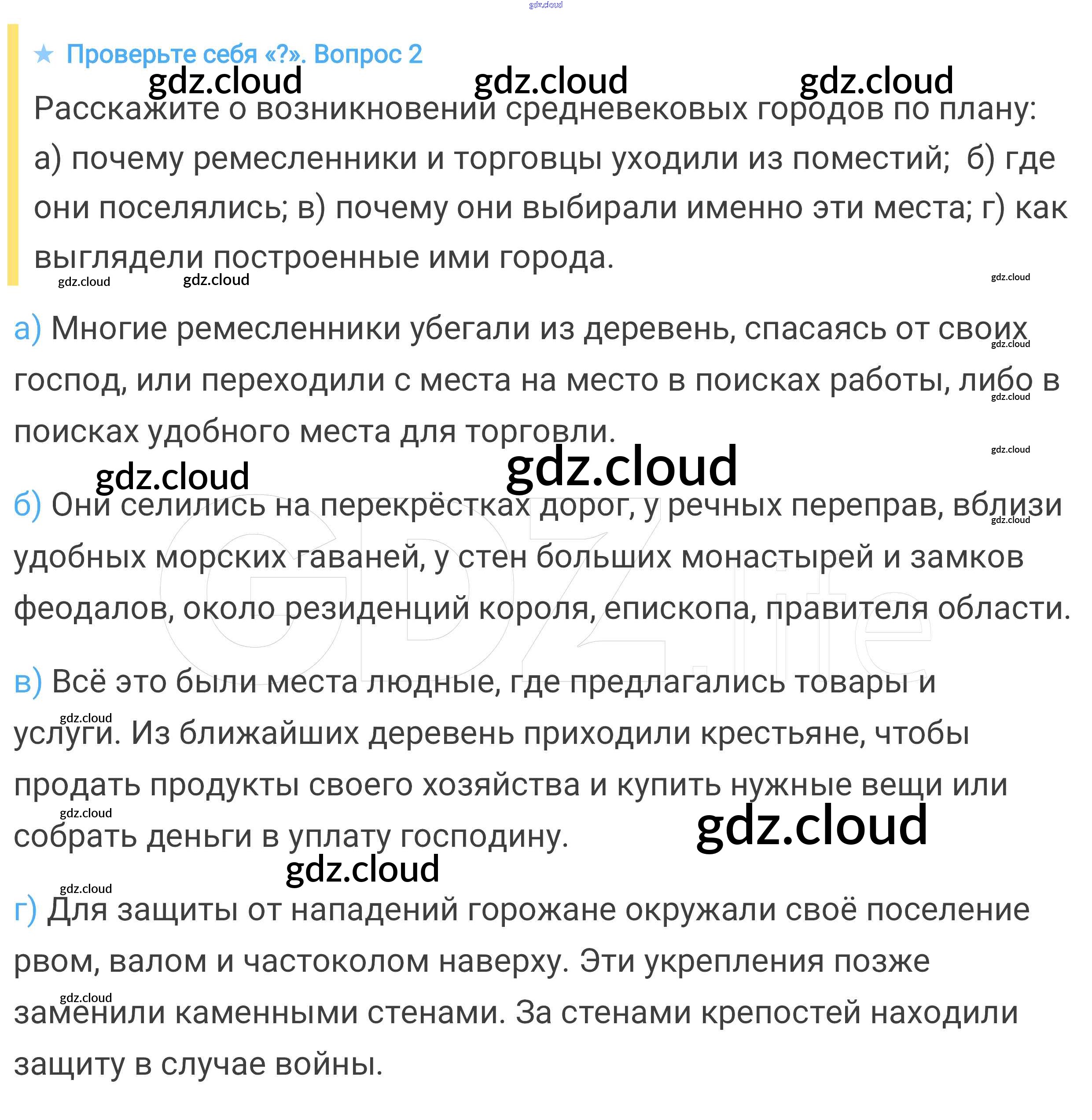 Проверьте себя § 13. Формирование средневековых городов. Городское ремесло по Истории 6 класс Учебник Агибалова Просвещение