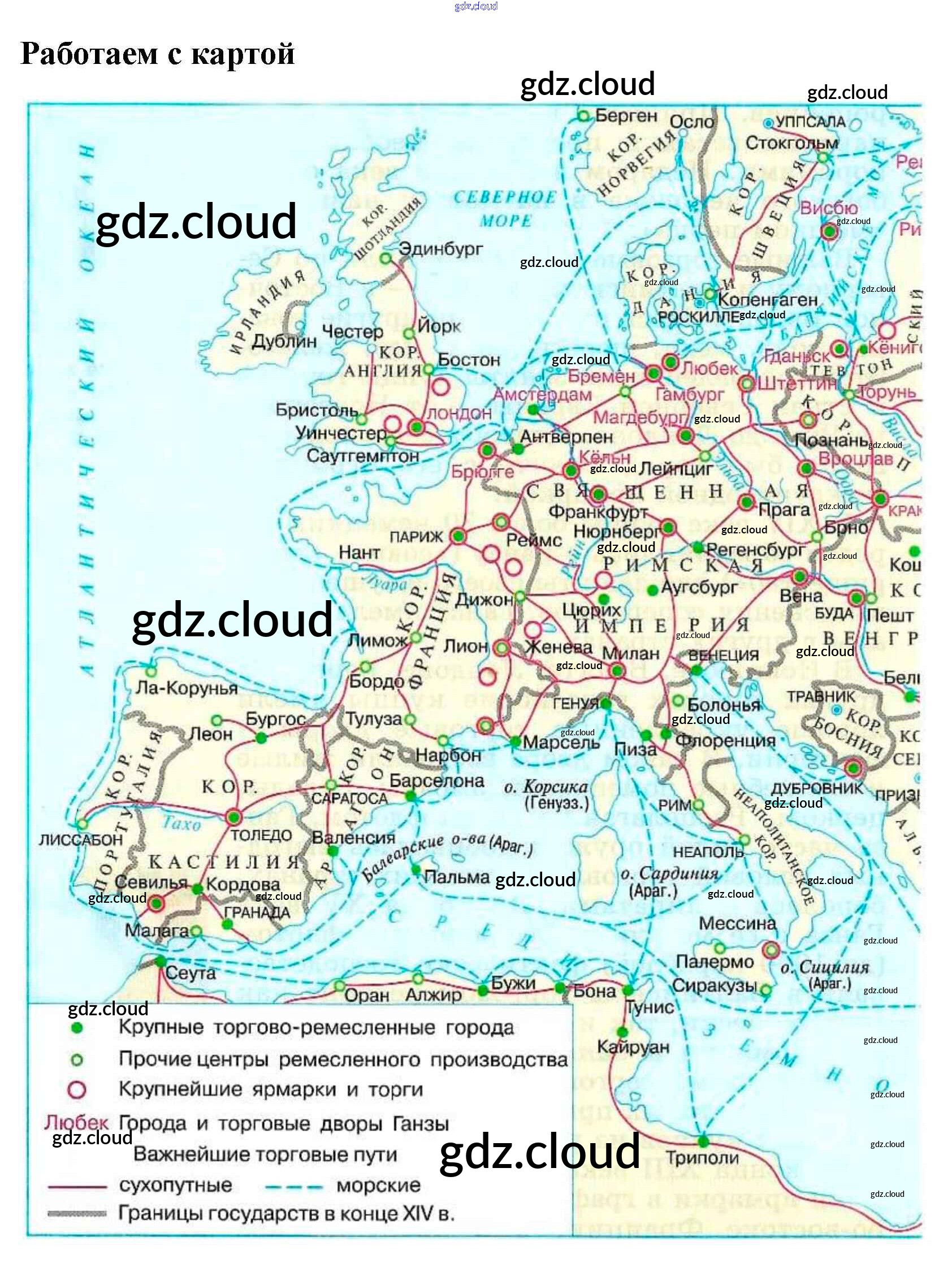 Вопросы к карте § 14. Торговля в Средние века по Истории 6 класс Учебник Агибалова Просвещение