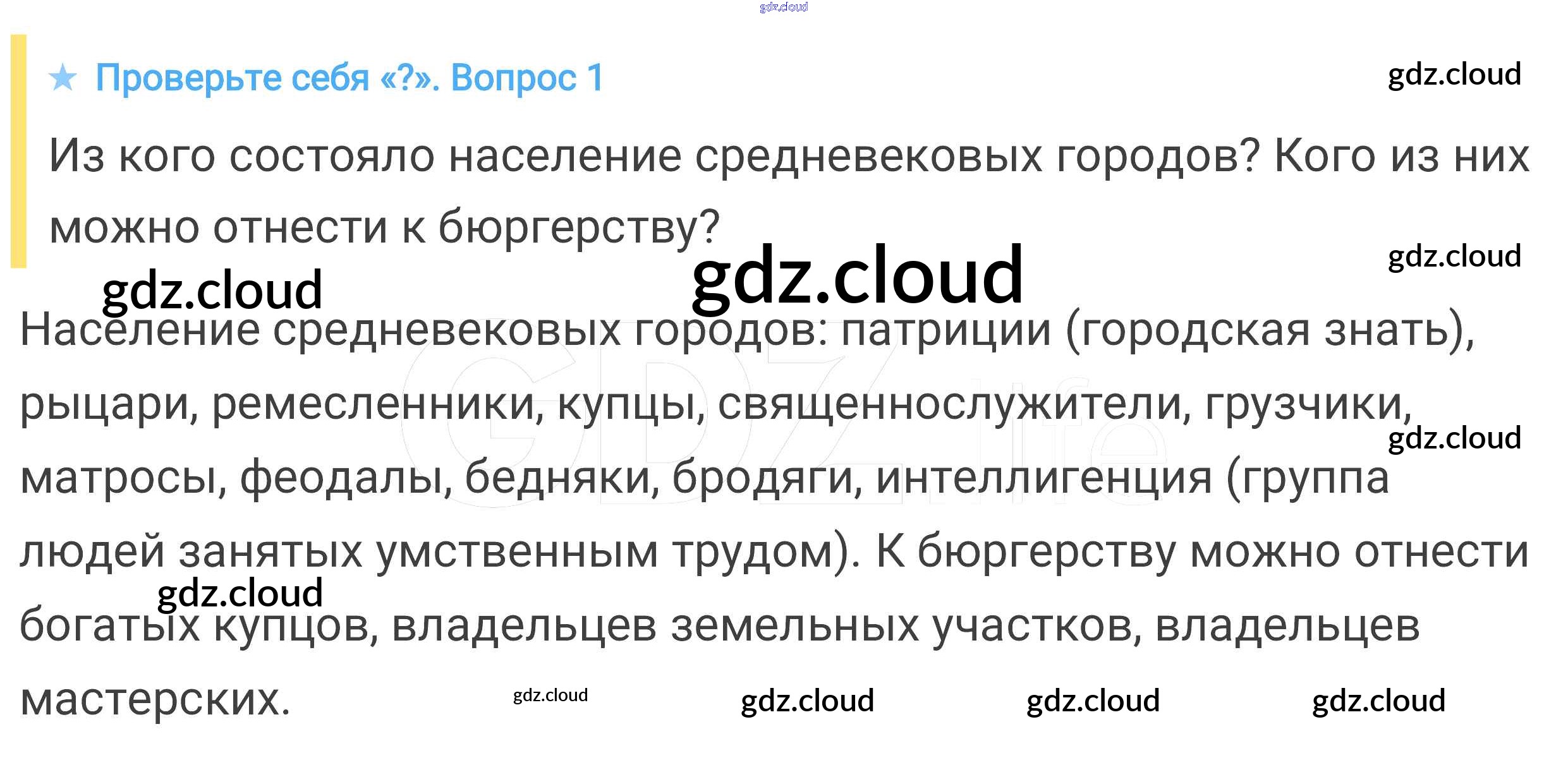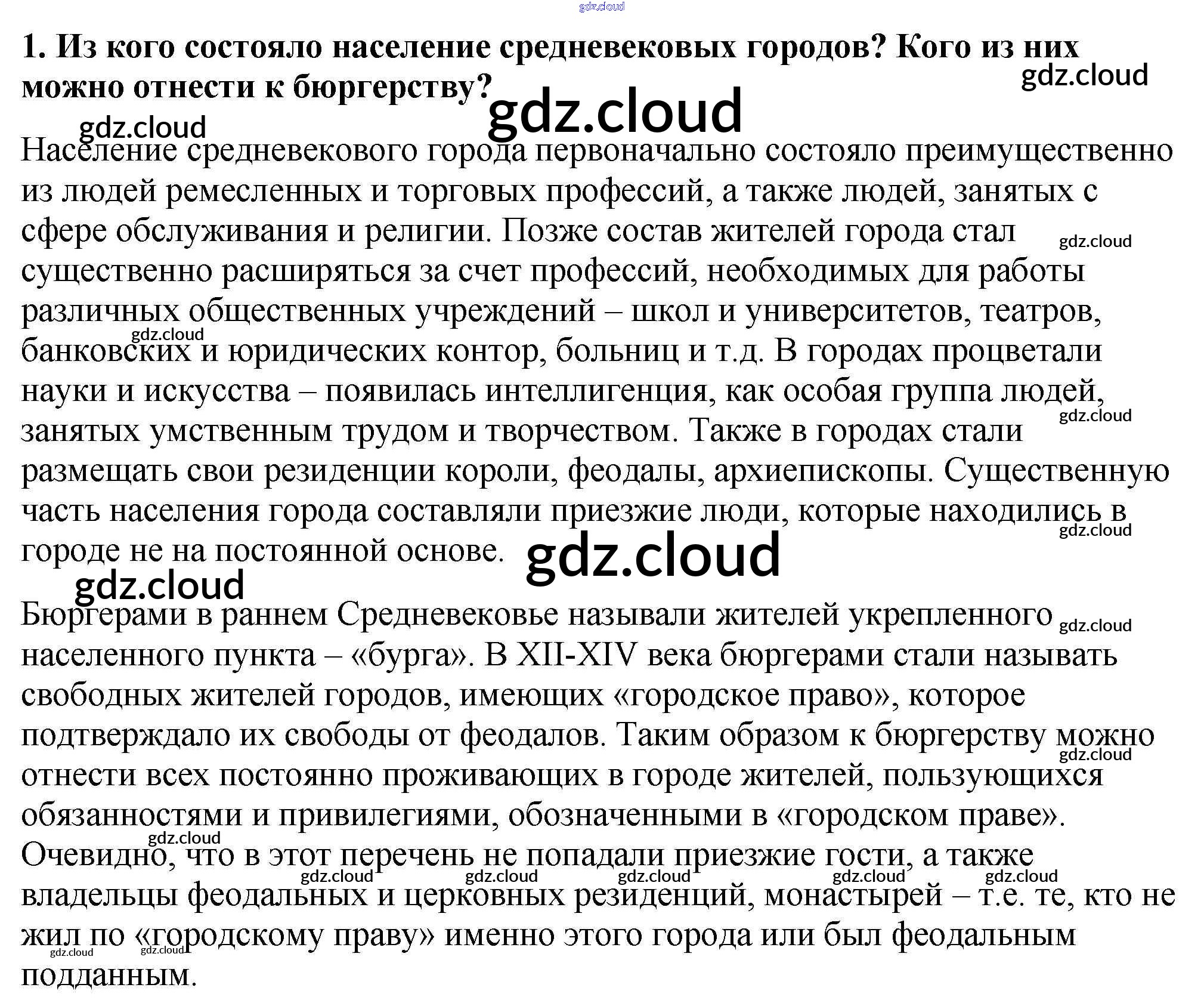 Проверьте себя § 15. Горожане и их образ жизни по Истории 6 класс Учебник Агибалова Просвещение
