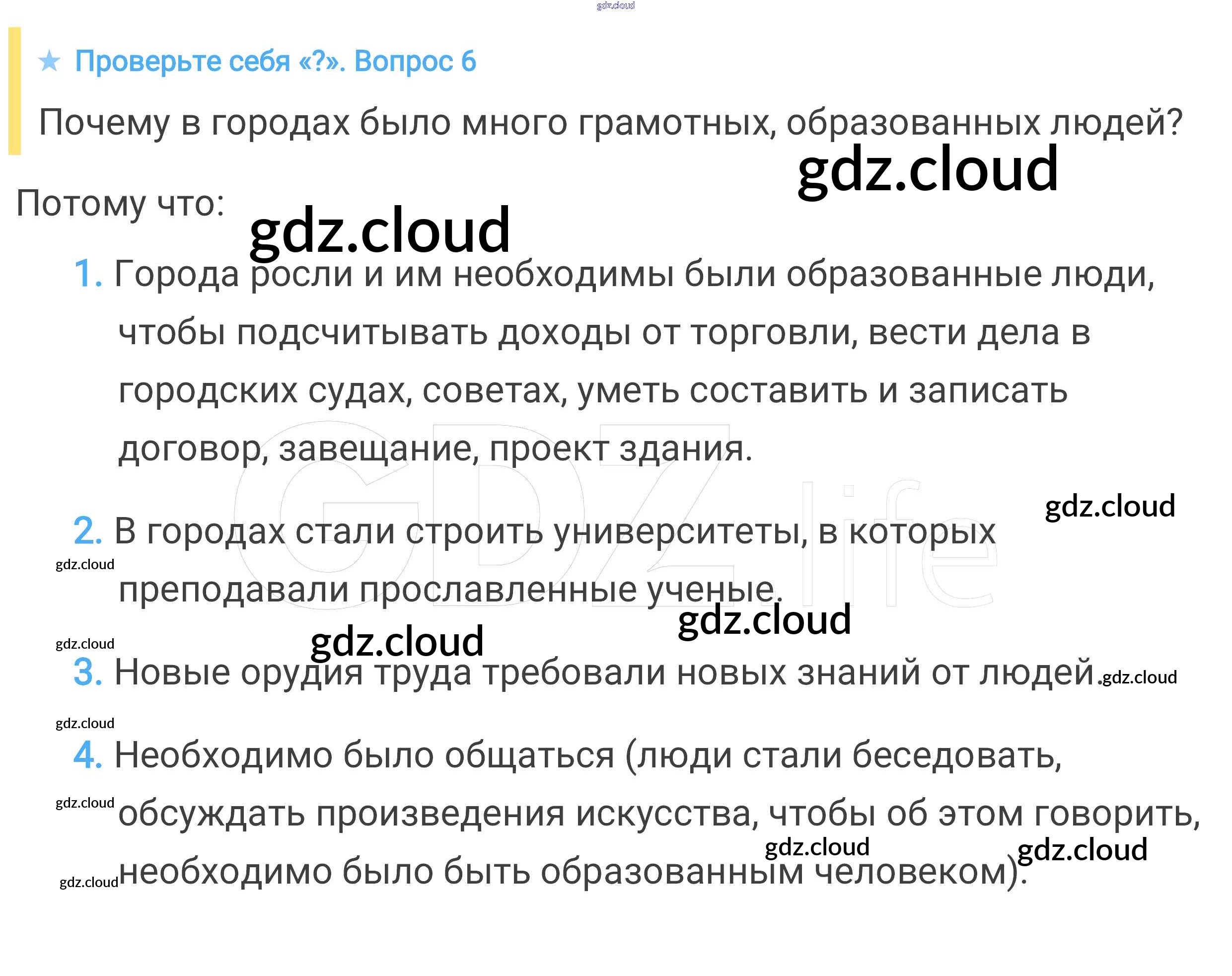 Проверьте себя § 15. Горожане и их образ жизни по Истории 6 класс Учебник Агибалова Просвещение