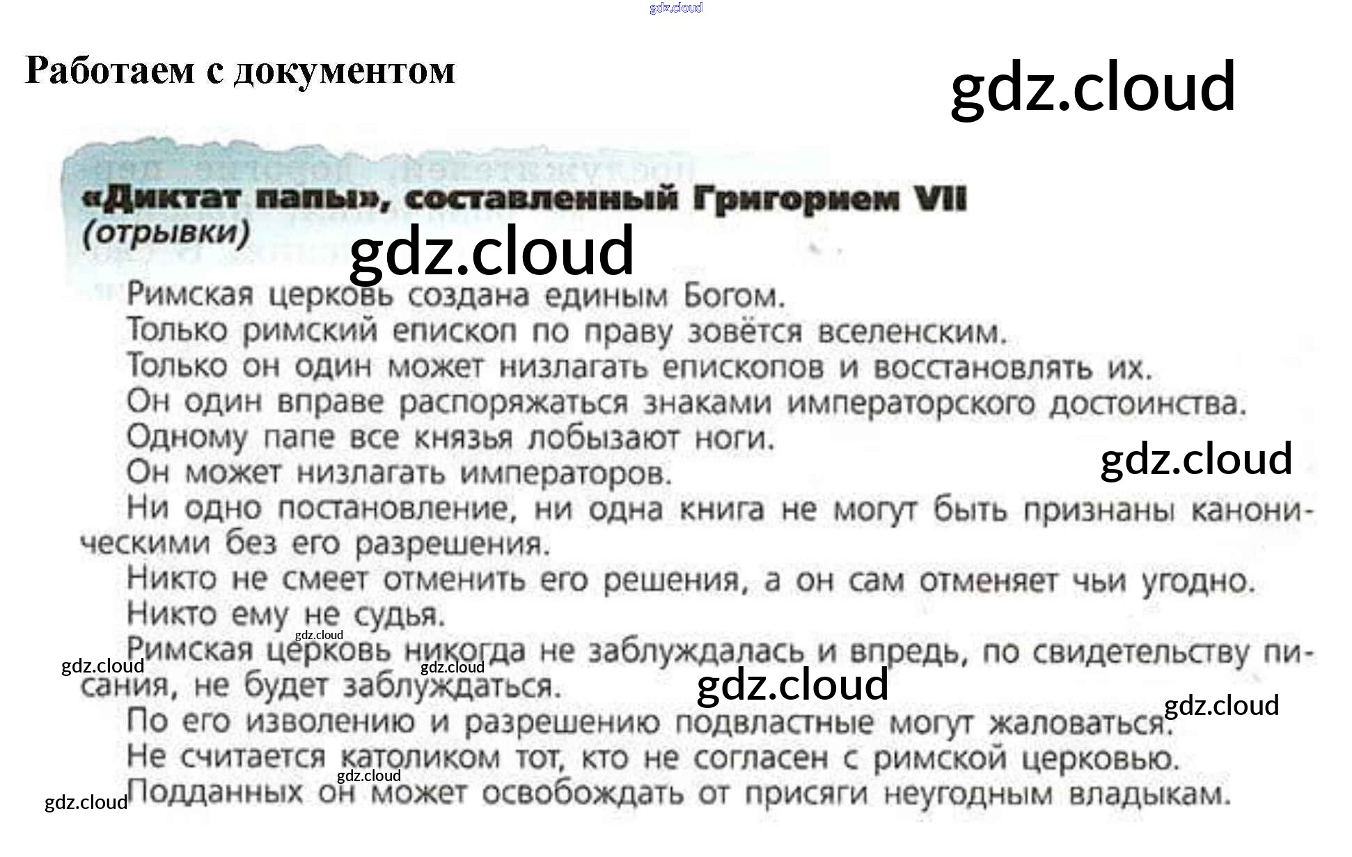 Вопросы к документу § 16. Могущество папской власти. Католическая церковь и еретики по Истории 6 класс Учебник Агибалова Просвещение