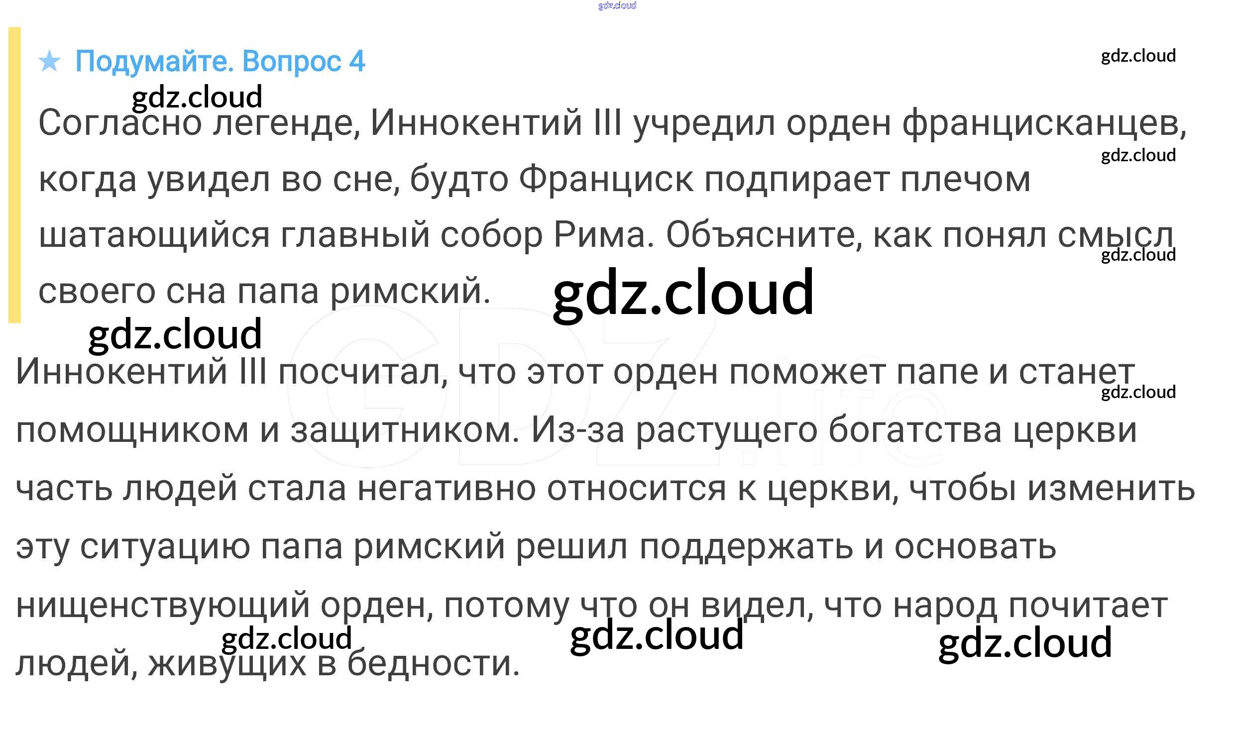 Подумайте § 16. Могущество папской власти. Католическая церковь и еретики по Истории 6 класс Учебник Агибалова Просвещение