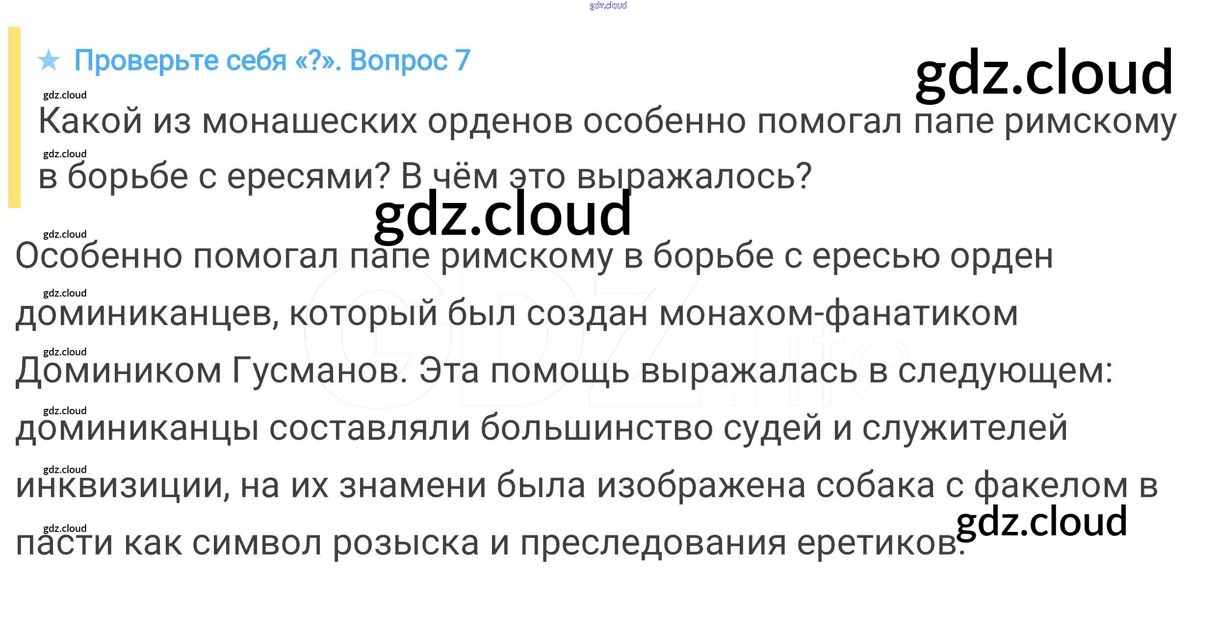 Проверьте себя § 16. Могущество папской власти. Католическая церковь и еретики по Истории 6 класс Учебник Агибалова Просвещение