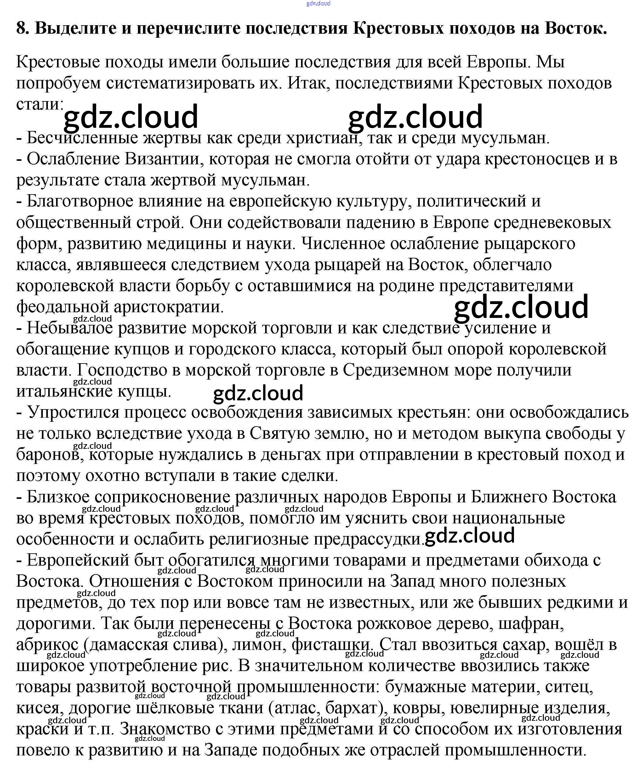 Ответ на задание 8 Учебник История за 6 (шестой) класс Агибалова, Донской 2014