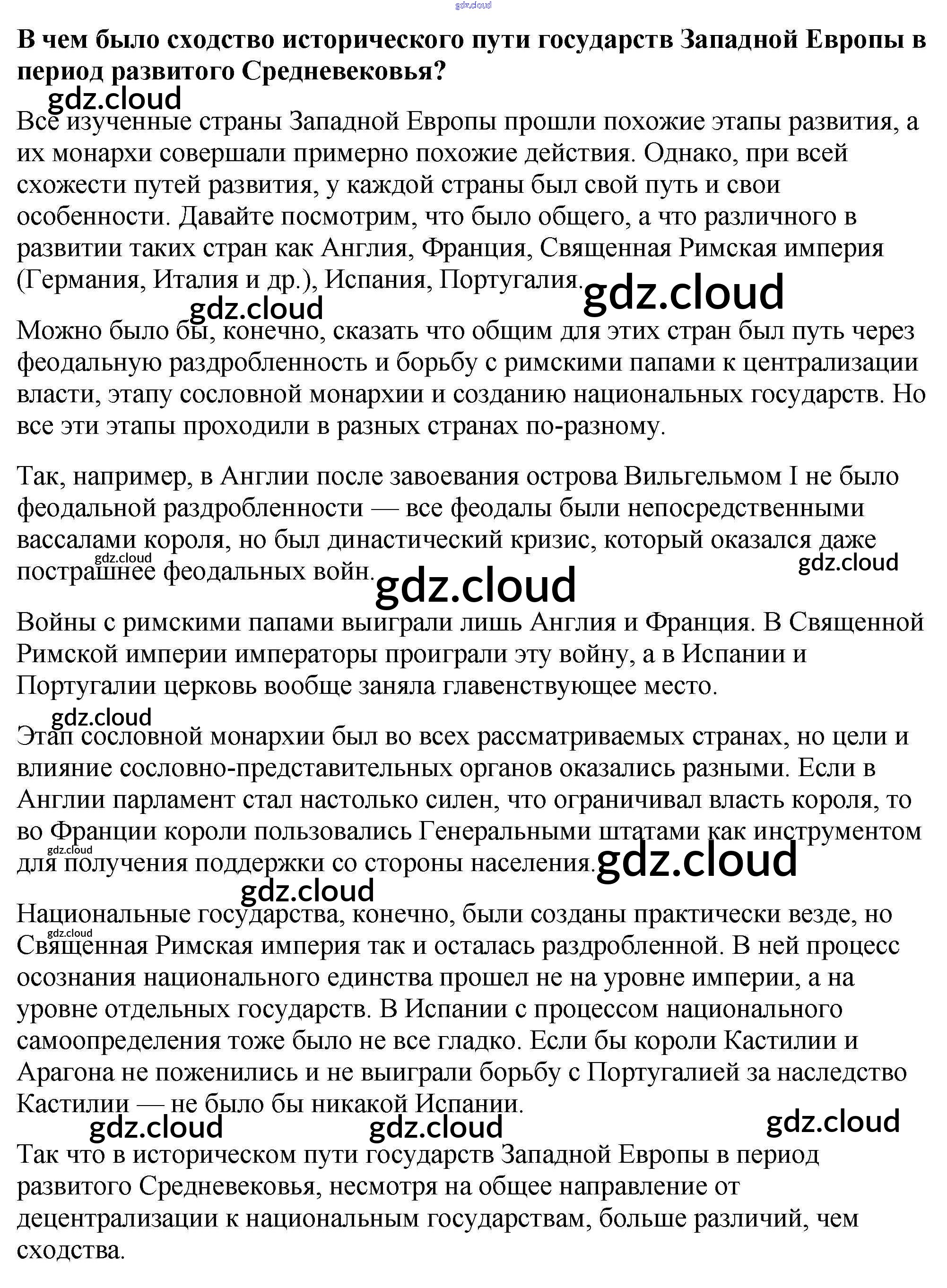 Вопросы в начале главы Ответы к главе 7 по Истории 6 класс Учебник Агибалова Просвещение