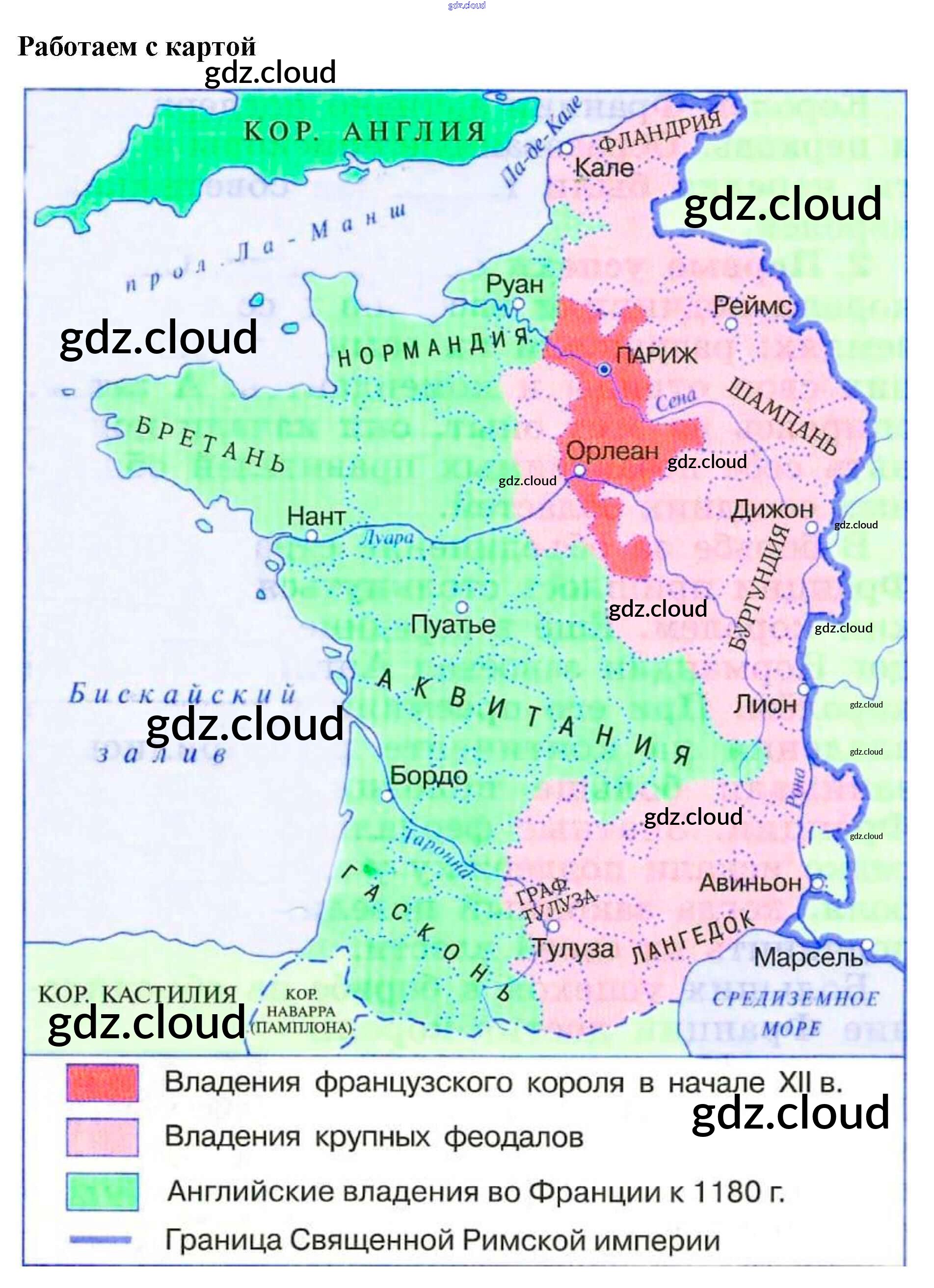 Вопросы к карте § 18. Как происходило объединение Франции по Истории 6 класс Учебник Агибалова Просвещение