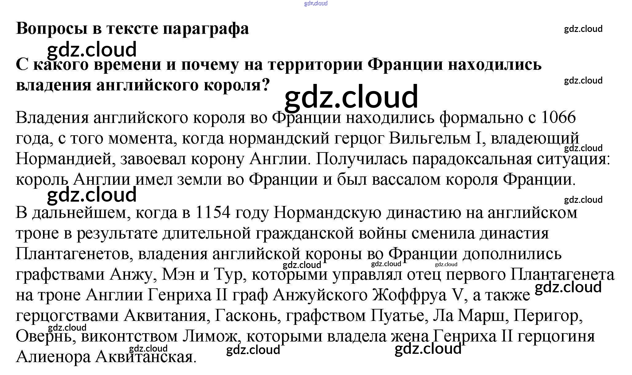 Вопросы в начале параграфа § 20. Столетняя война по Истории 6 класс Учебник Агибалова Просвещение