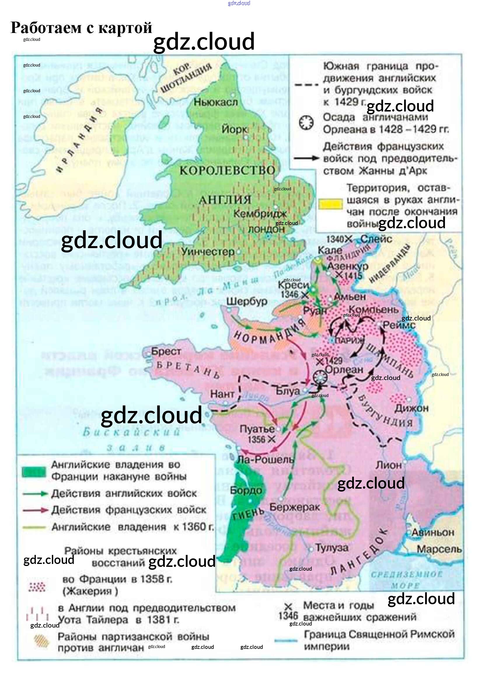 Вопросы к карте § 20. Столетняя война по Истории 6 класс Учебник Агибалова Просвещение