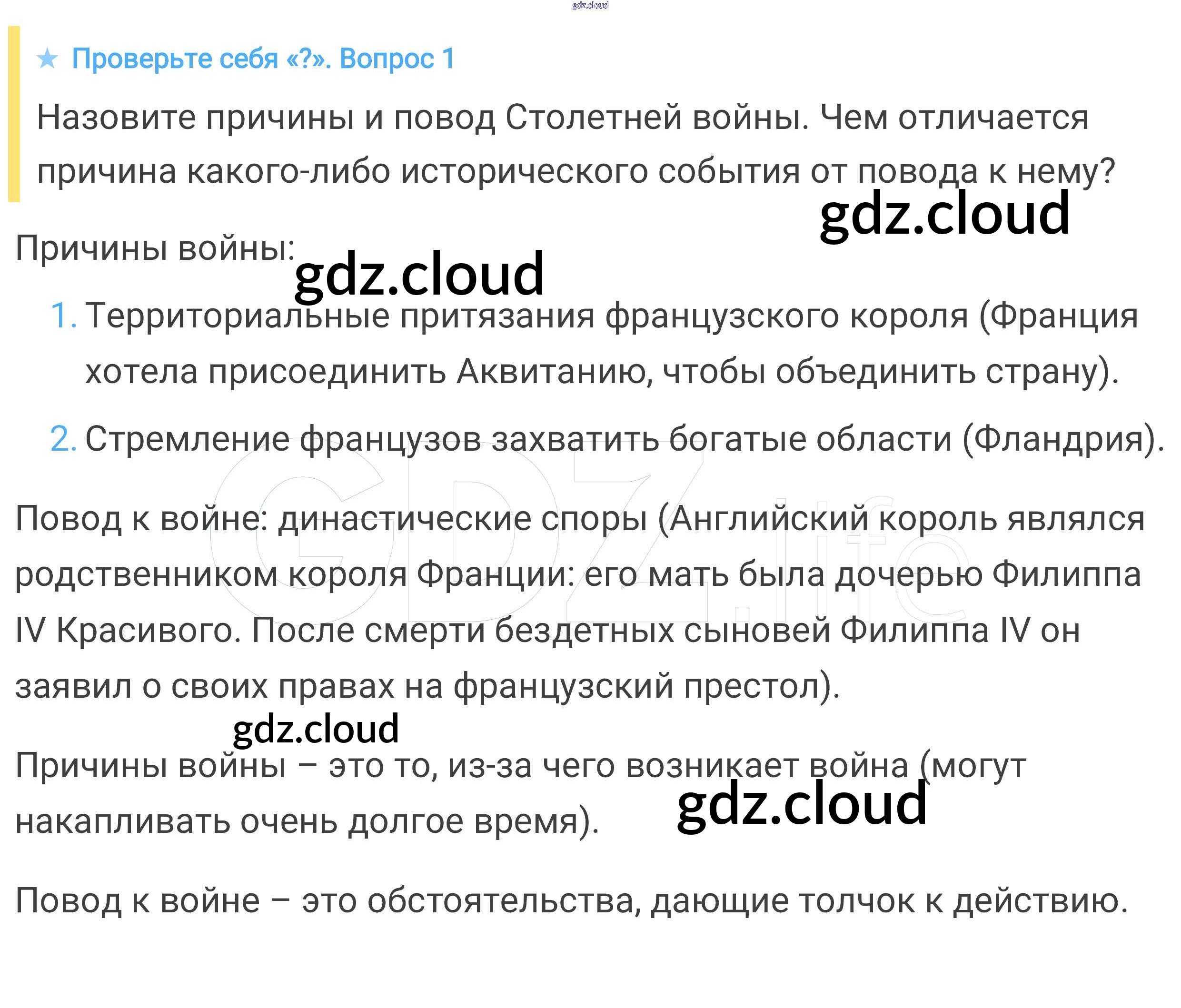 Проверьте себя § 20. Столетняя война по Истории 6 класс Учебник Агибалова Просвещение