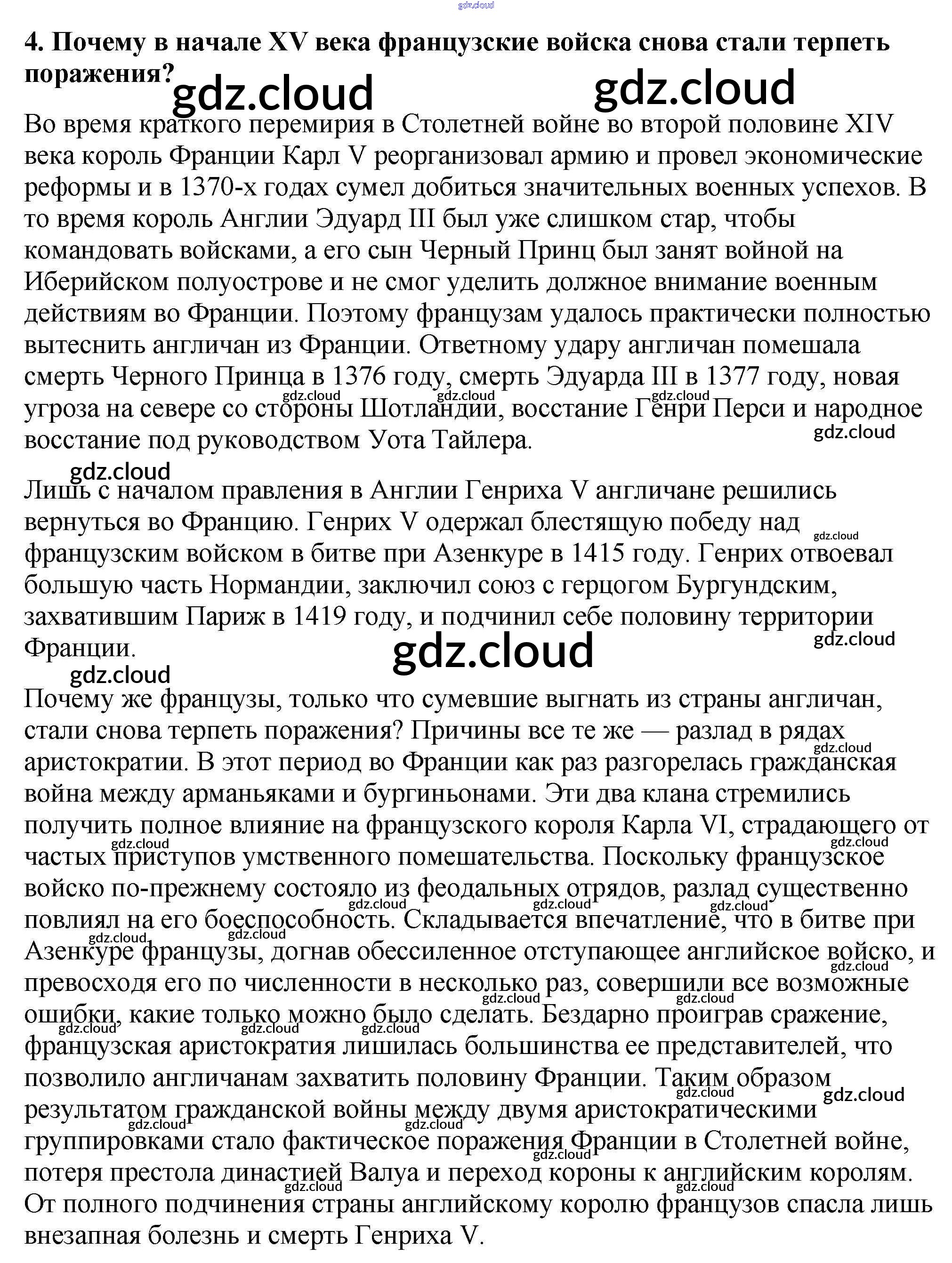 Проверьте себя § 20. Столетняя война по Истории 6 класс Учебник Агибалова Просвещение