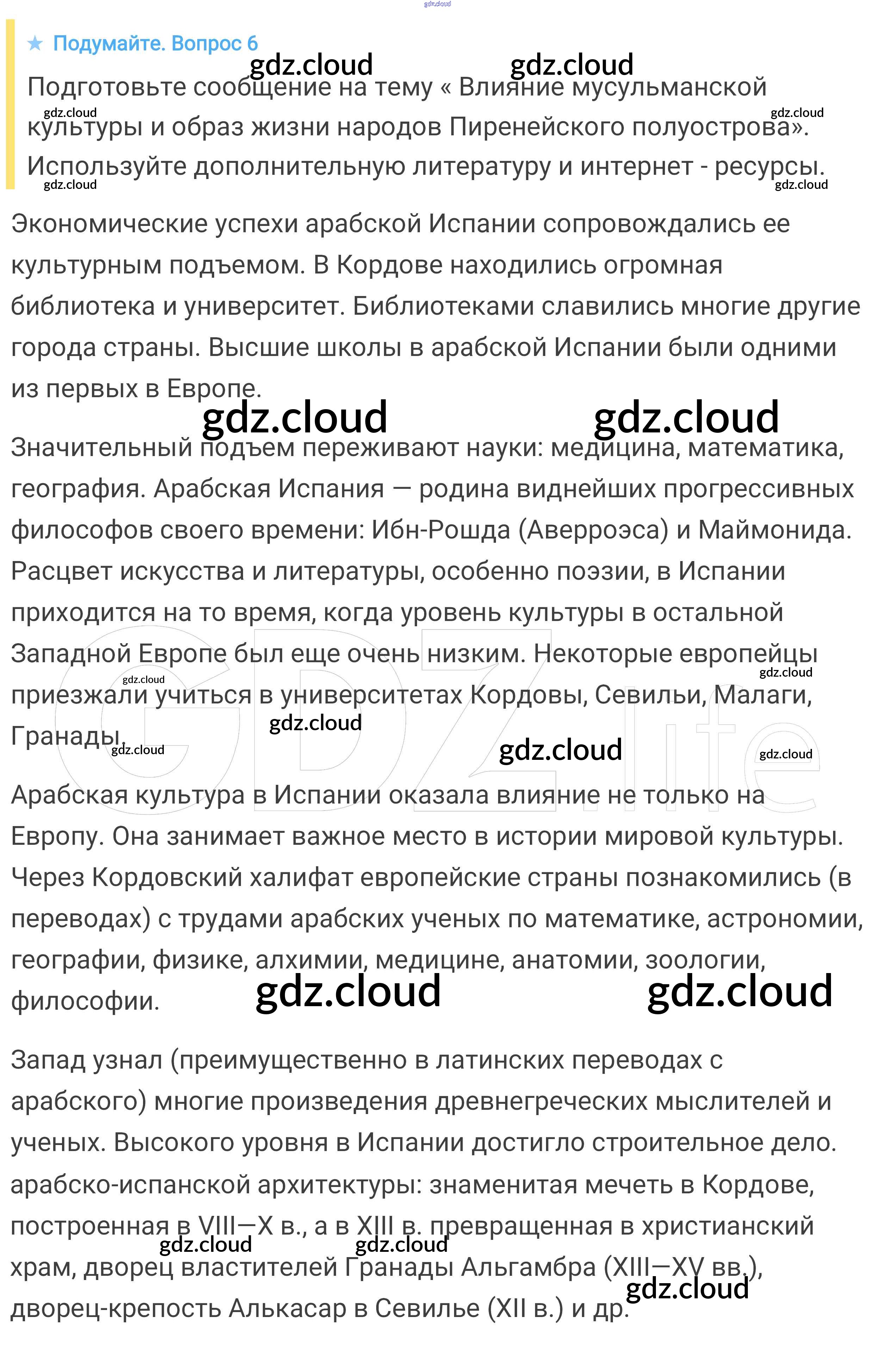 Подумайте § 22. Реконкиста и образование централизованных государств на Пиренейском полуострове по Истории 6 класс Учебник Агибалова Просвещение