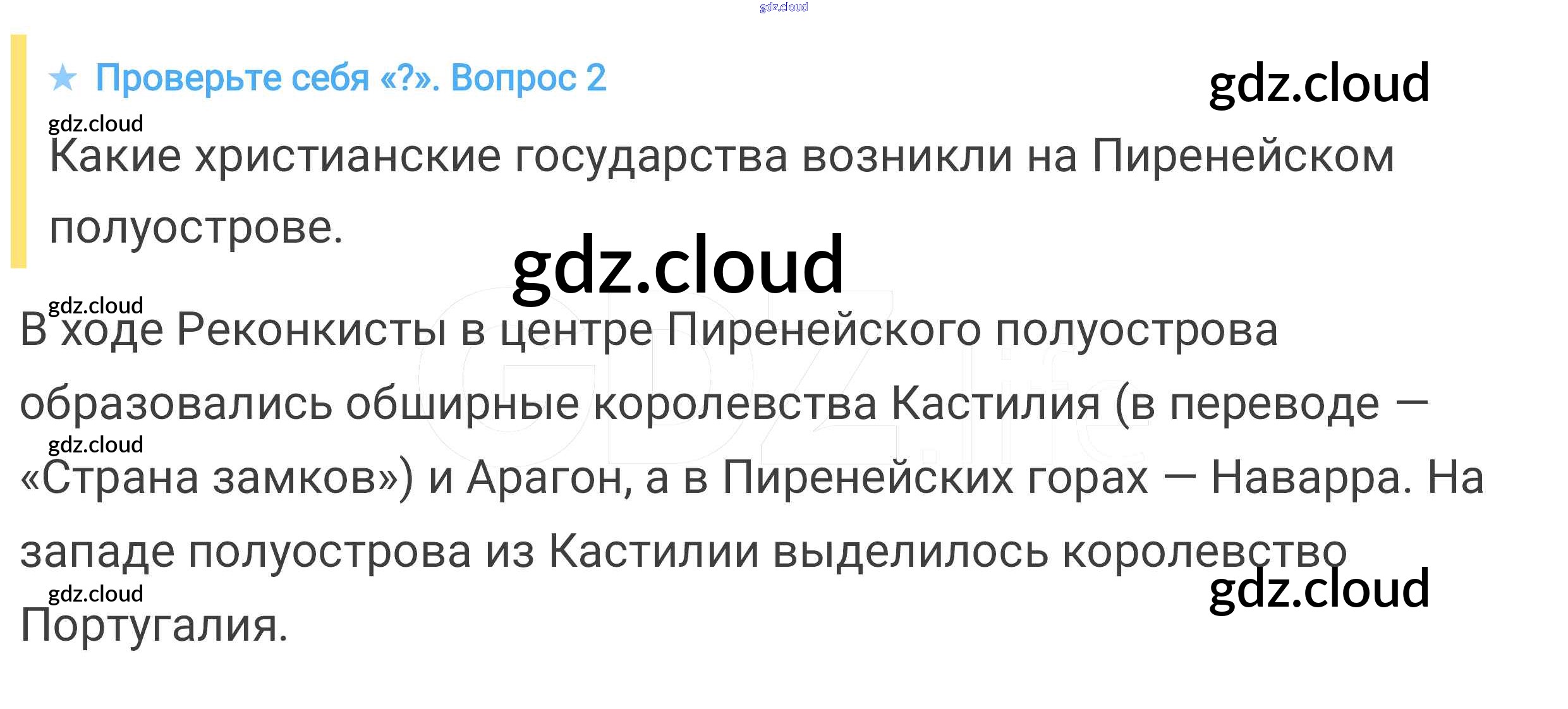 Проверьте себя § 22. Реконкиста и образование централизованных государств на Пиренейском полуострове по Истории 6 класс Учебник Агибалова Просвещение