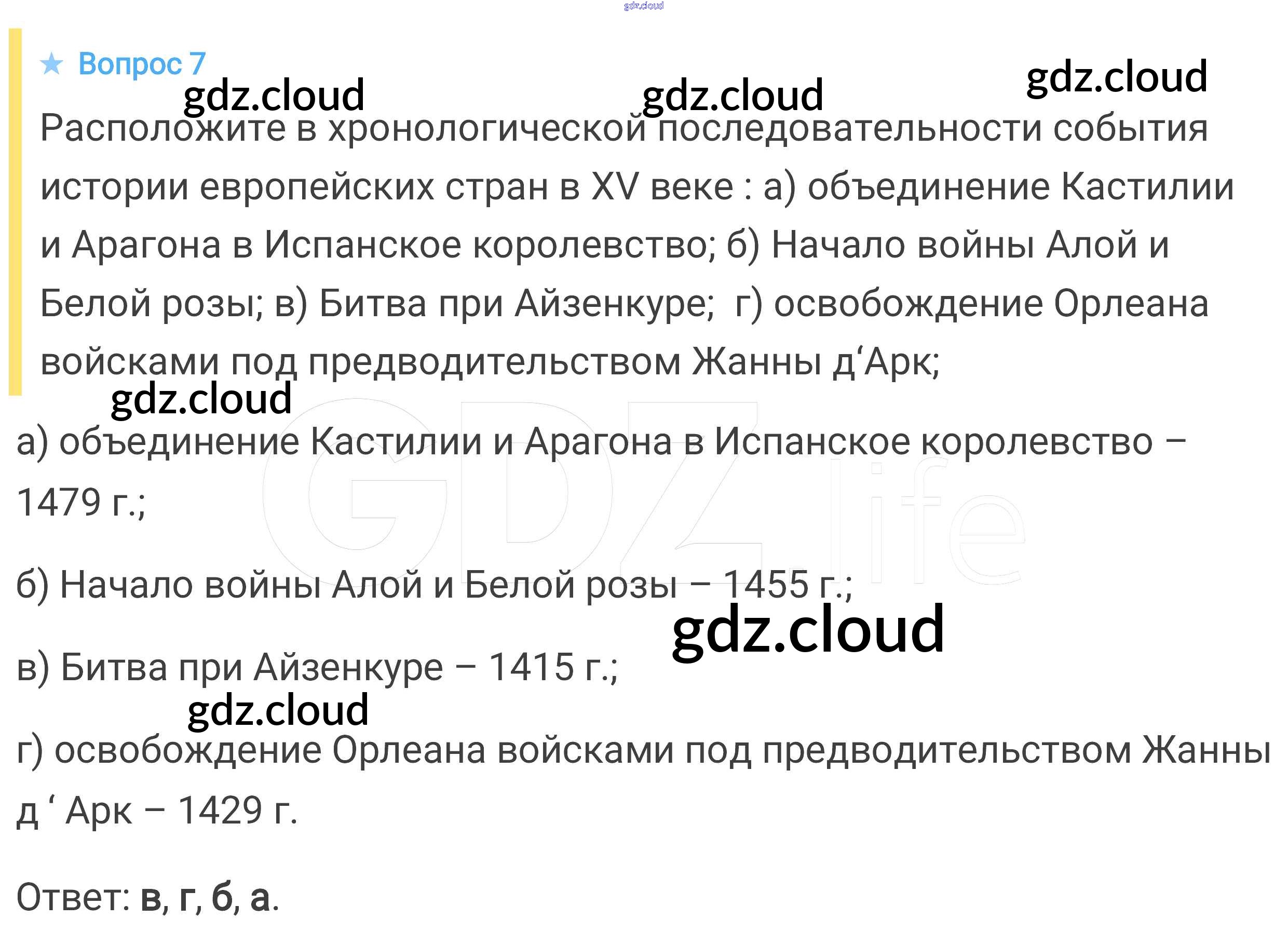 Ответ на задание 7 Учебник История за 6 (шестой) класс Агибалова, Донской 2014