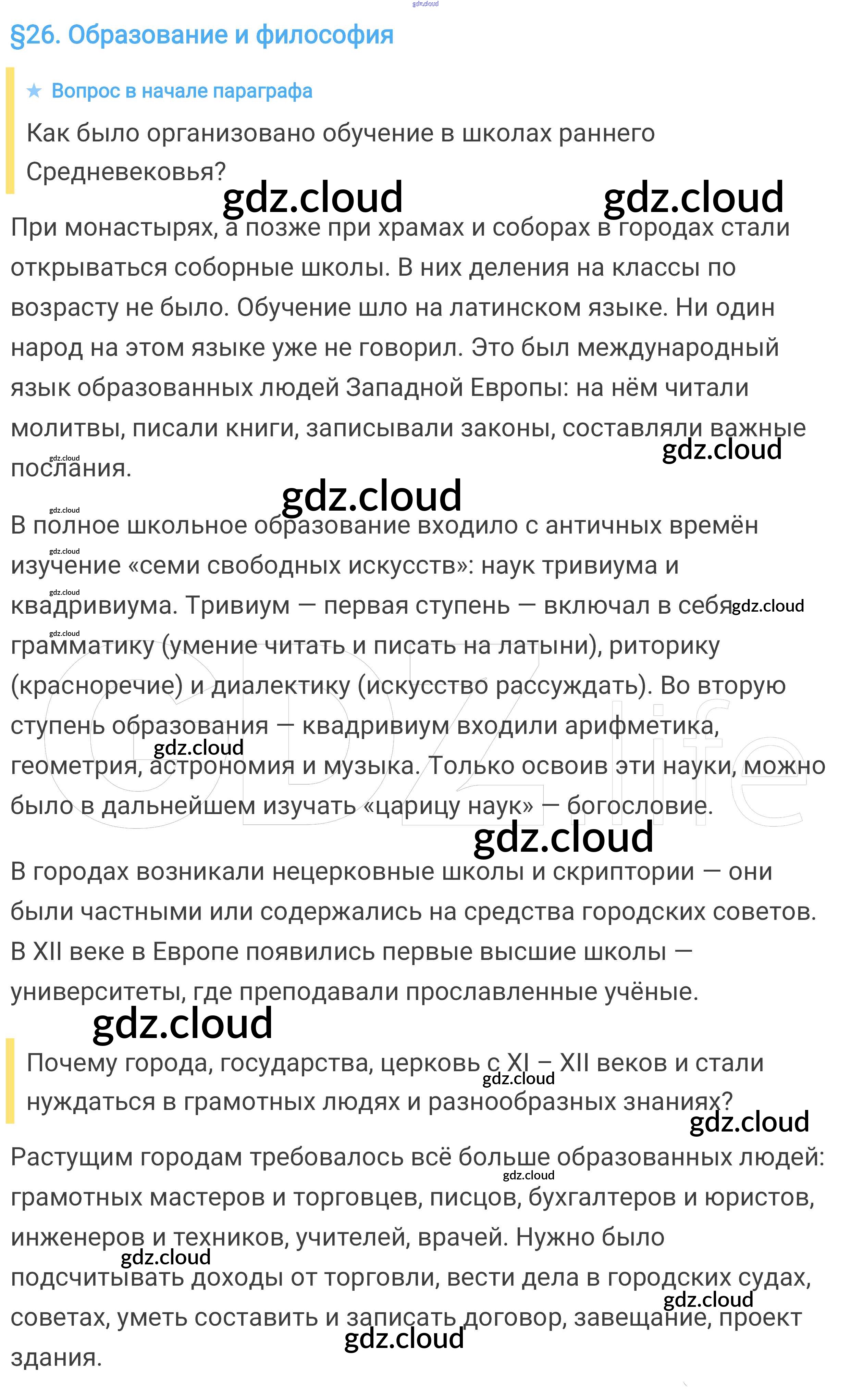 Вопросы в начале параграфа § 26. Образование и философия по Истории 6 класс Учебник Агибалова Просвещение