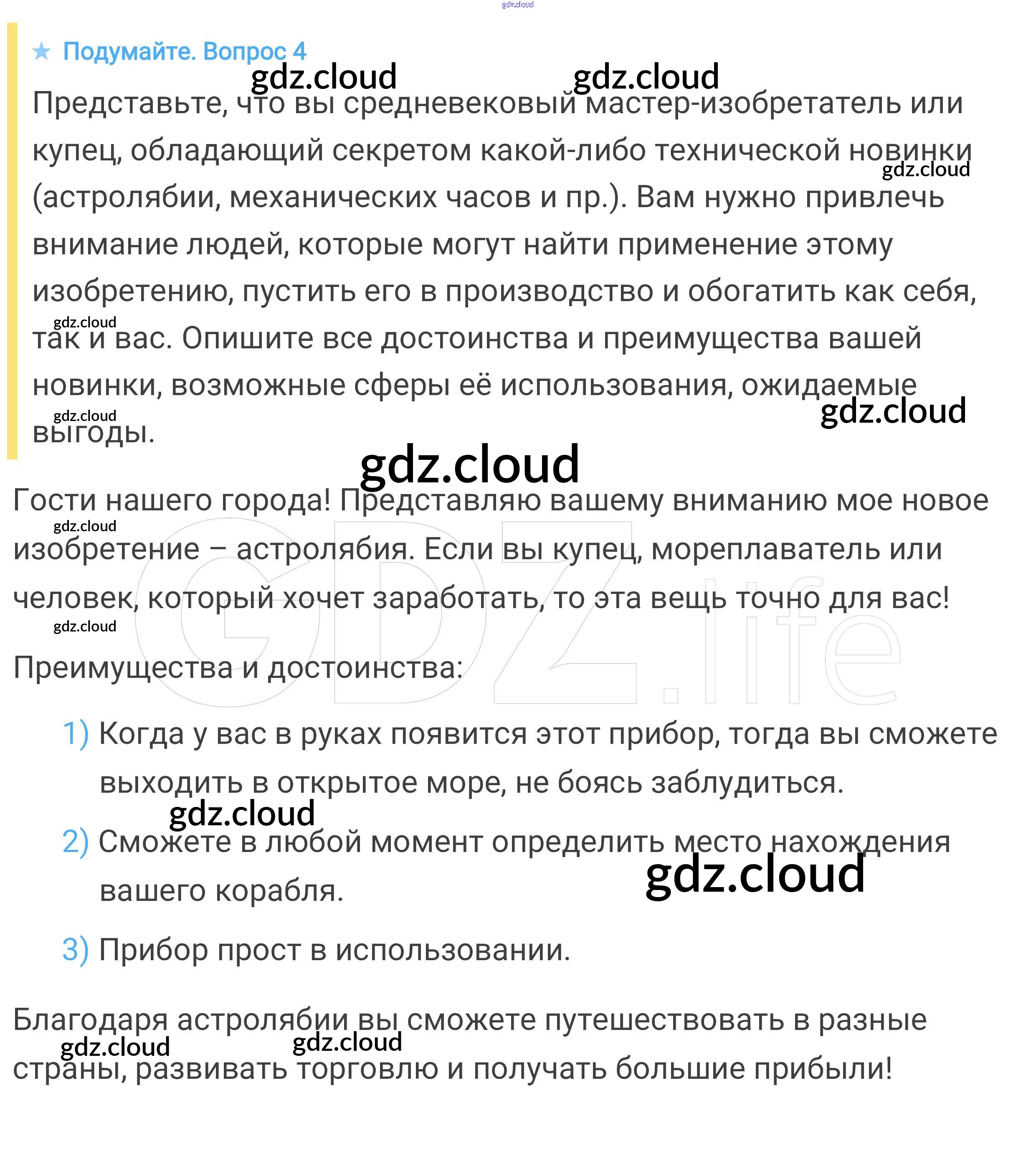 Подумайте § 30. Научные открытия и изобретения по Истории 6 класс Учебник Агибалова Просвещение