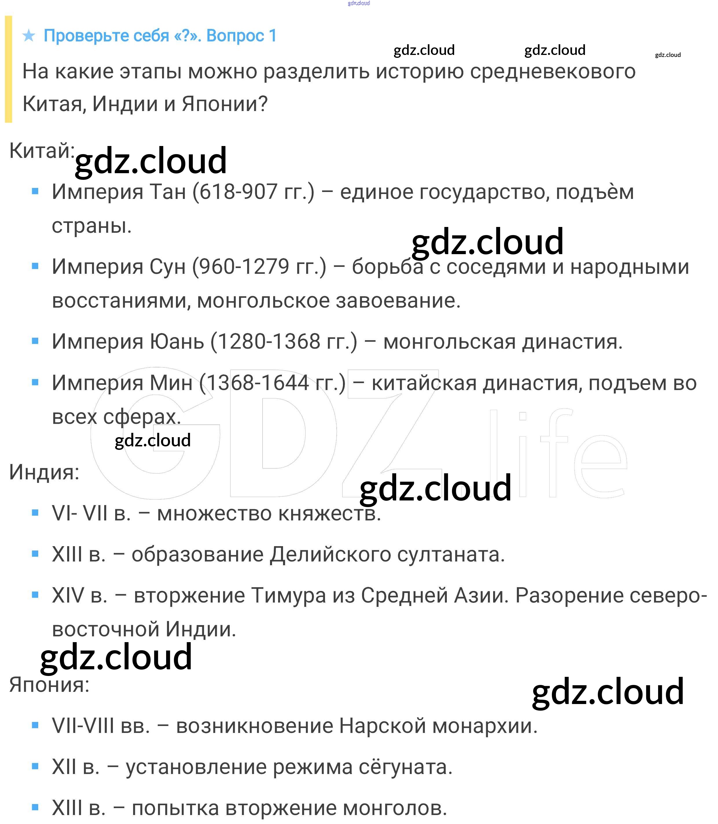 Проверьте себя § 31. Средневековая Азия: Китай, Индия, Япония по Истории 6 класс Учебник Агибалова Просвещение