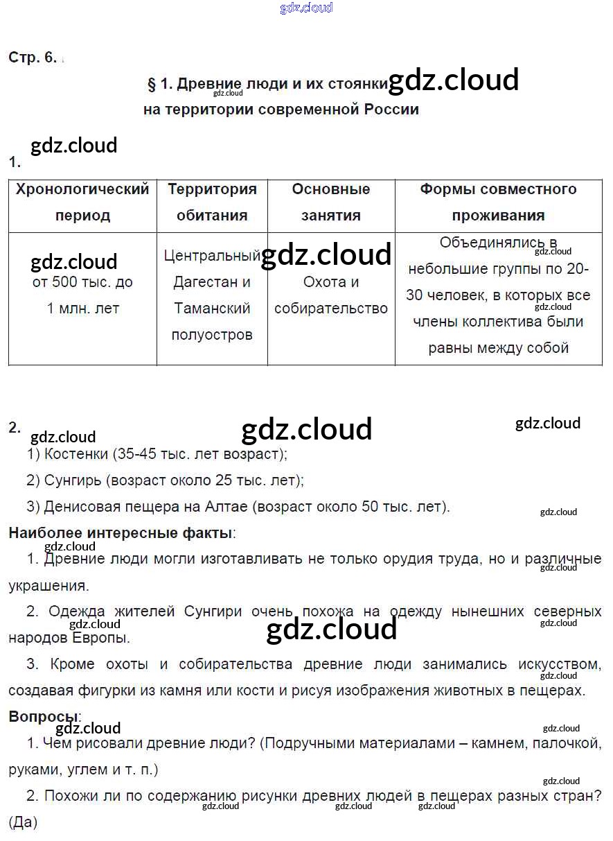 Ответы к §1 по Истории 6 класс Рабочая тетрадь Артасов Просвещение