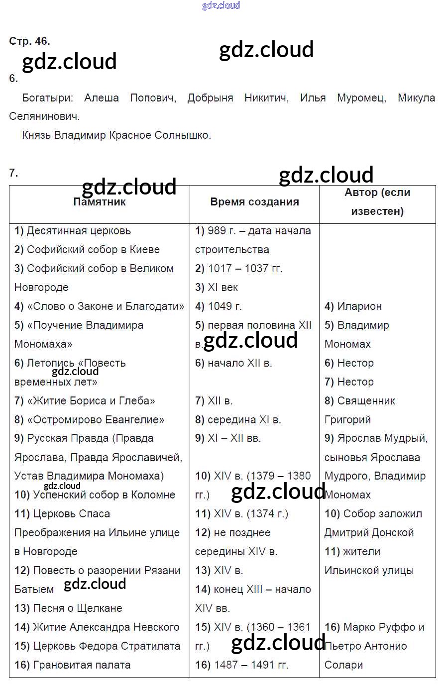 Ответ на задание стр. 46 Рабочая тетрадь История за 6 (шестой) класс Артасов, Данилов, Косулина, Соколова 2016