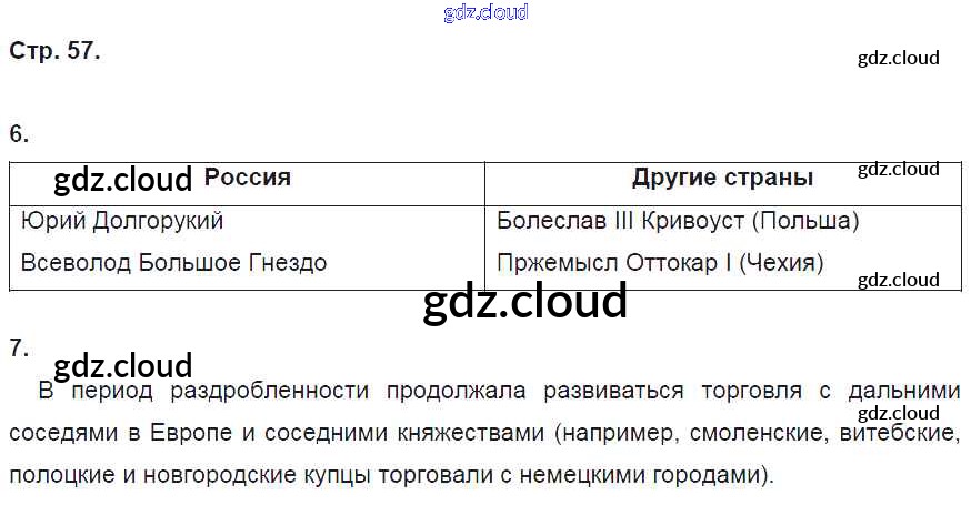Ответ на задание стр. 57 Рабочая тетрадь История за 6 (шестой) класс Артасов, Данилов, Косулина, Соколова 2016