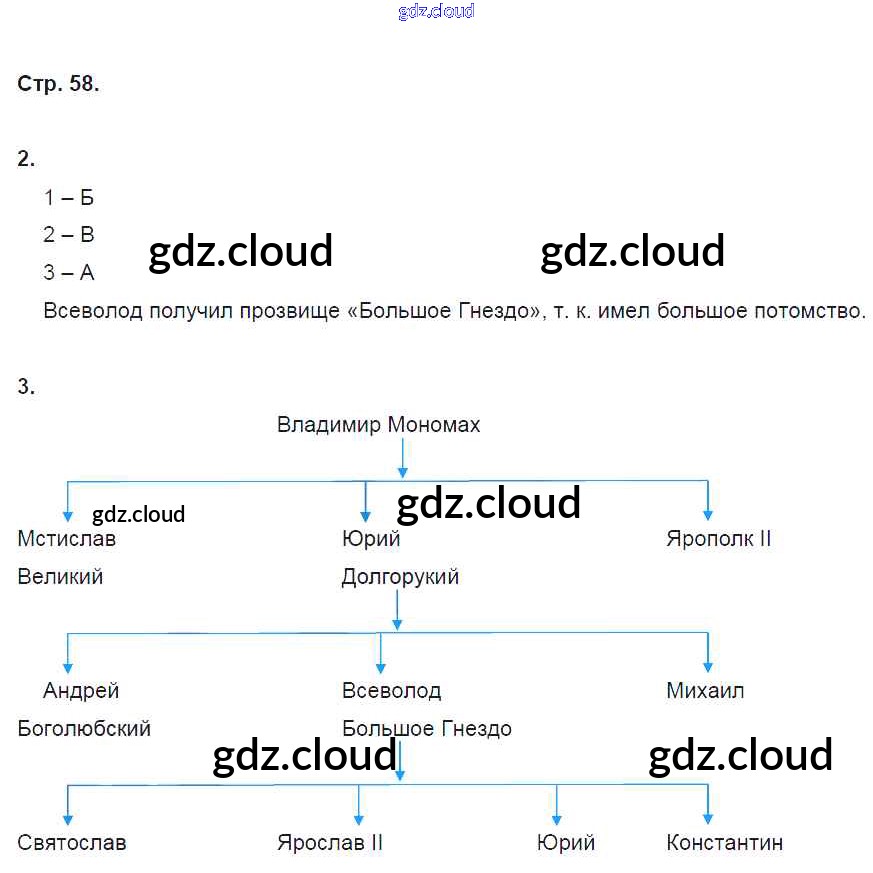 Ответ на задание стр. 58 Рабочая тетрадь История за 6 (шестой) класс Артасов, Данилов, Косулина, Соколова 2016