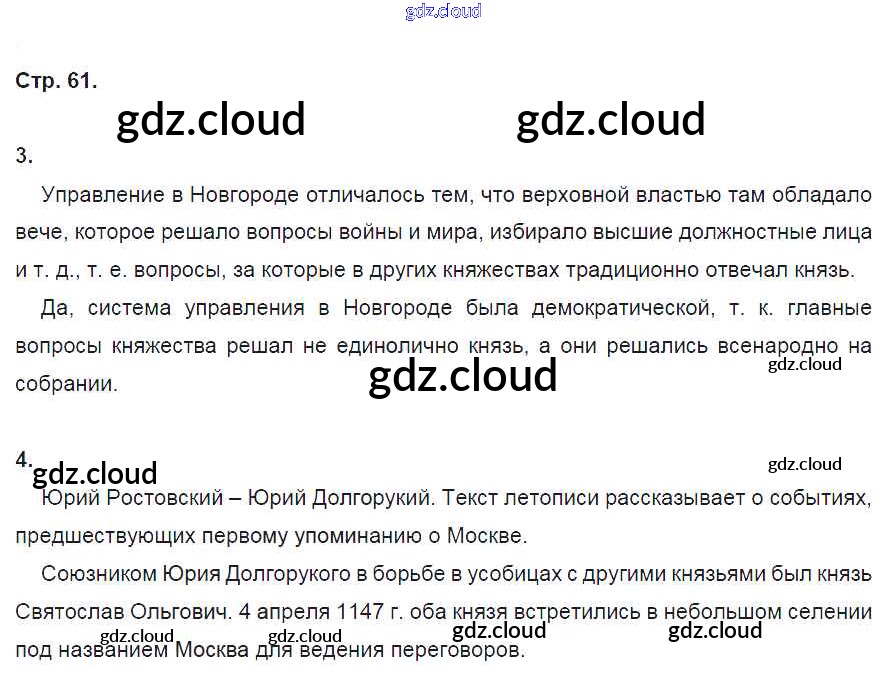 Ответ на задание стр. 61 Рабочая тетрадь История за 6 (шестой) класс Артасов, Данилов, Косулина, Соколова 2016