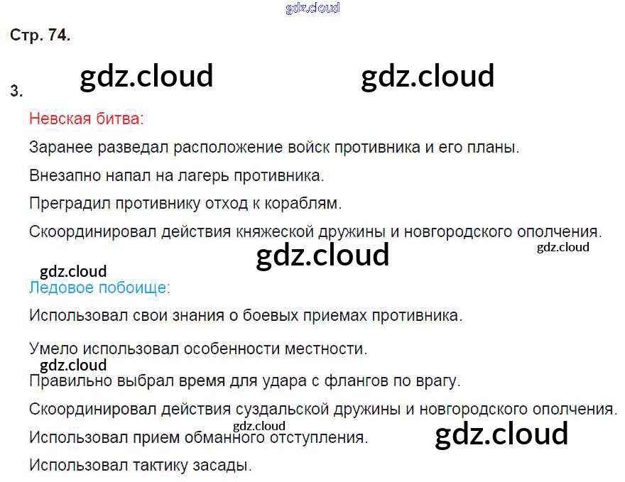 Ответ на задание стр. 74 Рабочая тетрадь История за 6 (шестой) класс Артасов, Данилов, Косулина, Соколова 2016