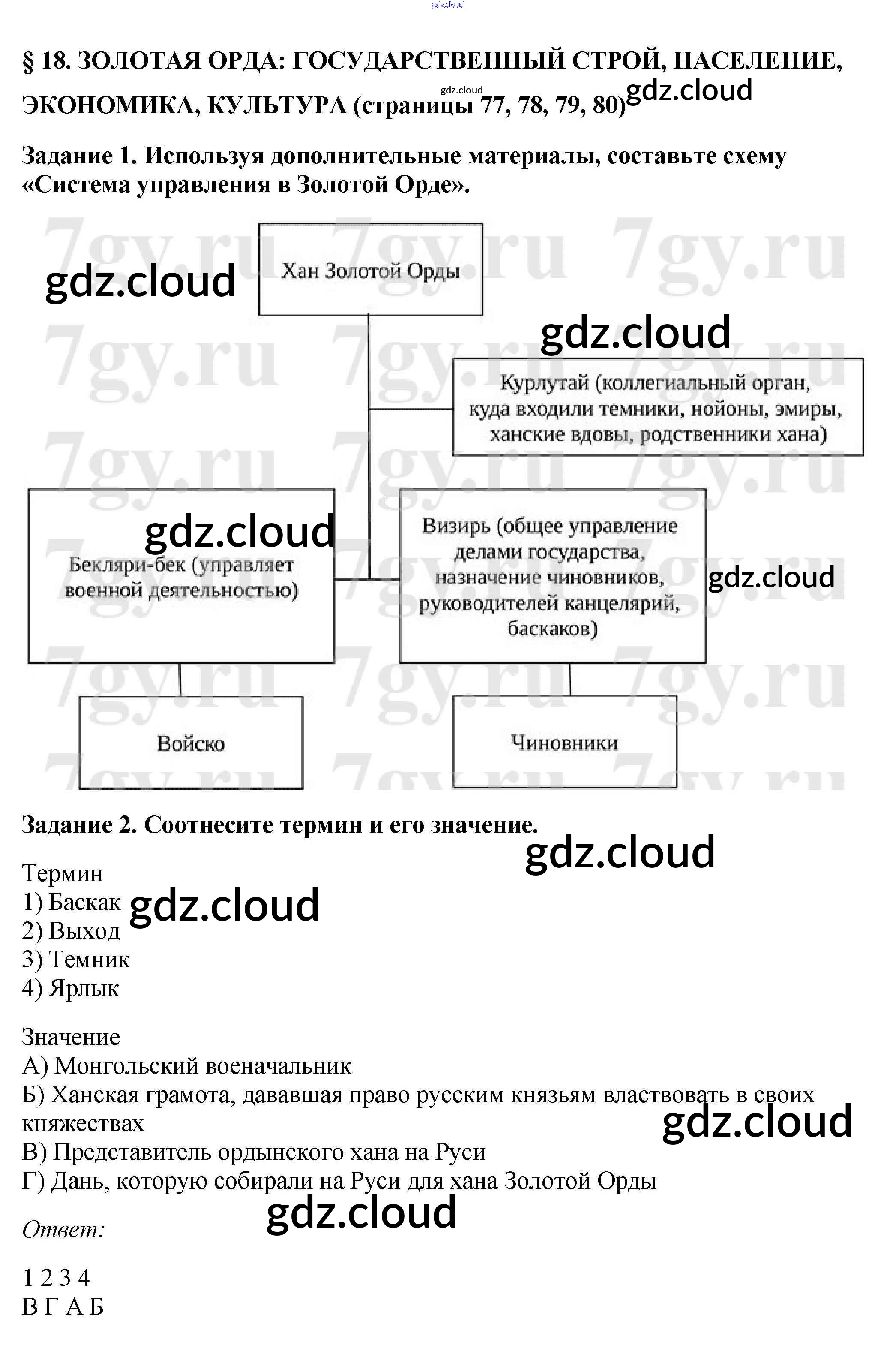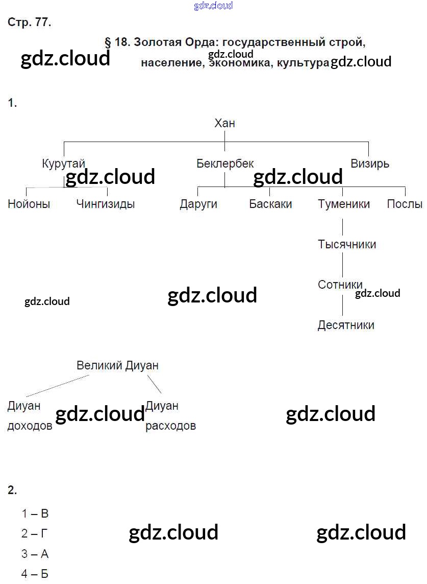 Ответ на задание стр. 77 Рабочая тетрадь История за 6 (шестой) класс Артасов, Данилов, Косулина, Соколова 2016